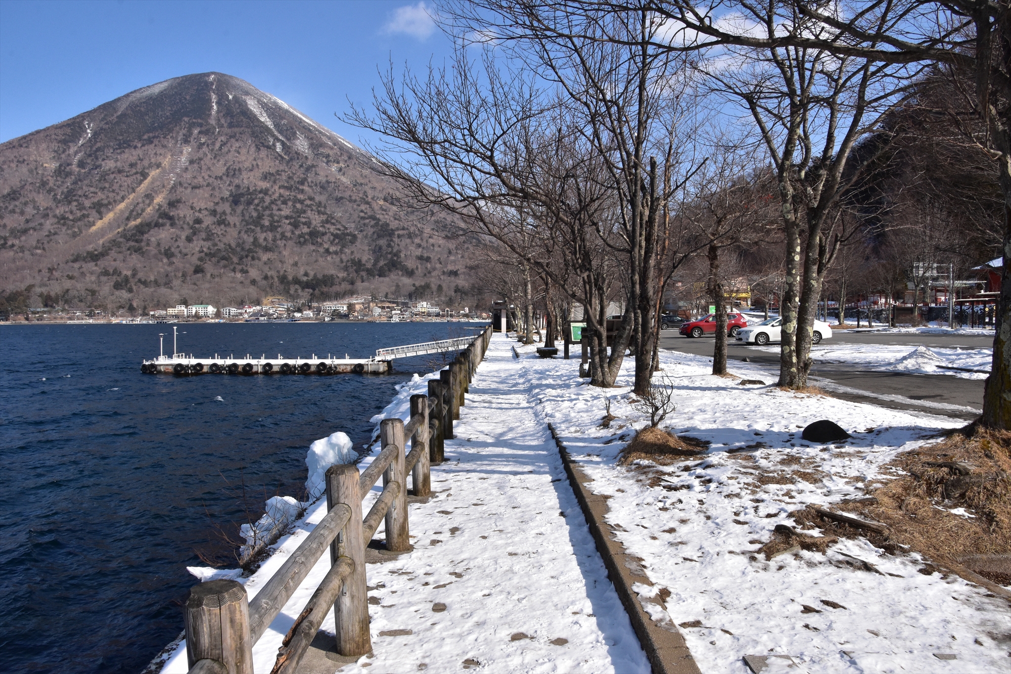 注意事項として、湖岸沿いの歩道は凍った雪の上に新雪が乗っている状態でしたので大変滑りやすいです!