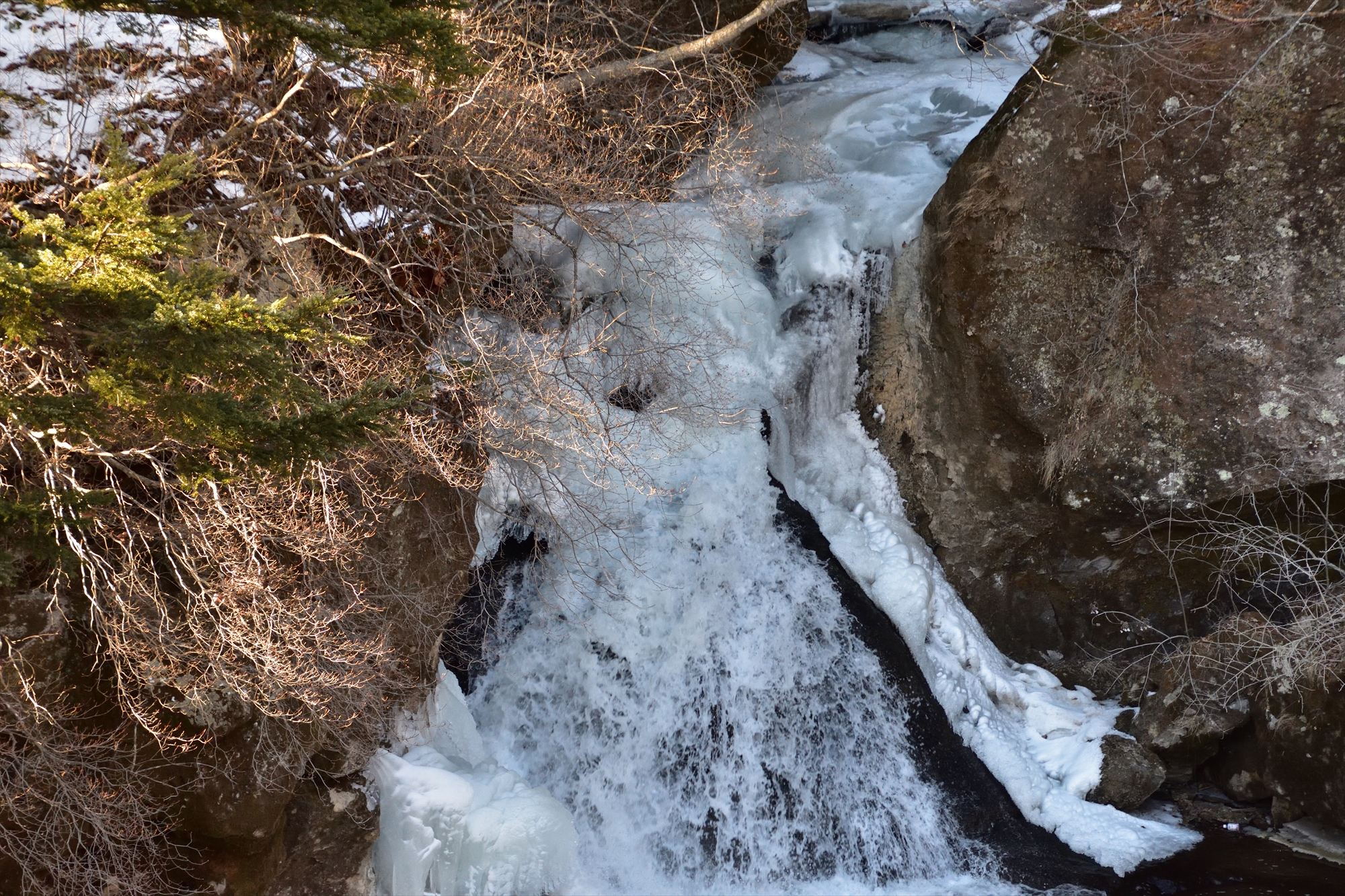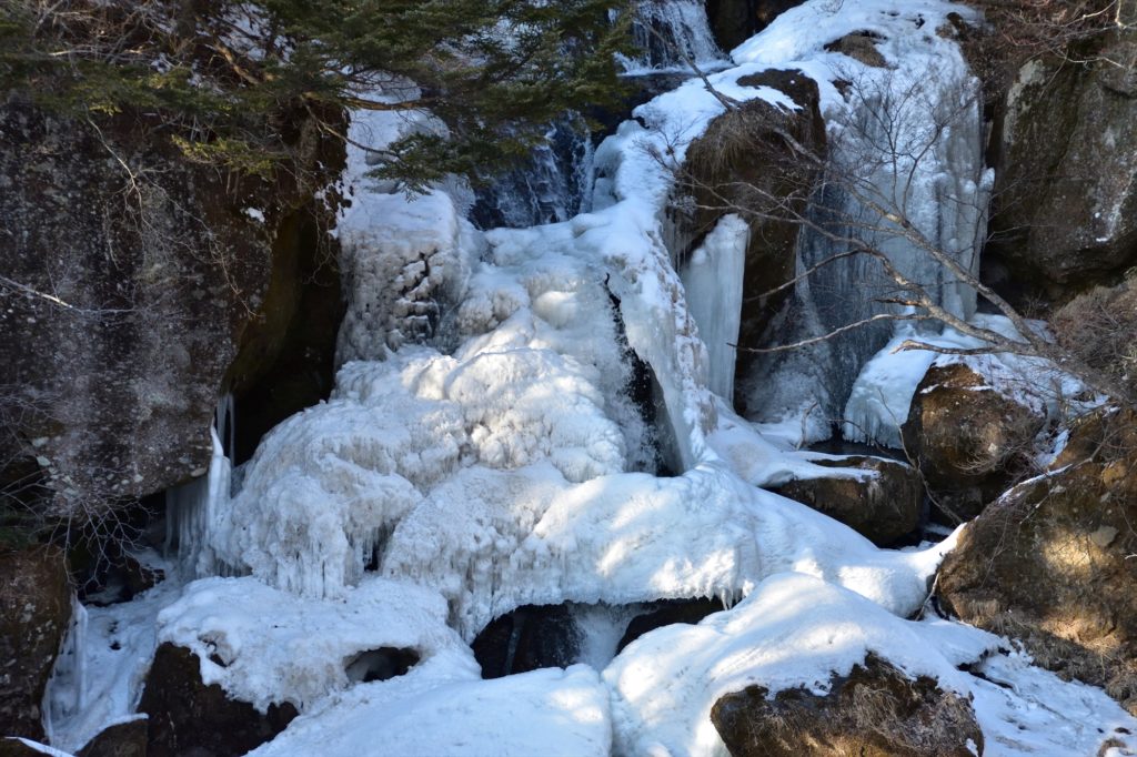 1月に比べやや冷え込みが進み、滝を覆う氷のカバーが発達していました。
