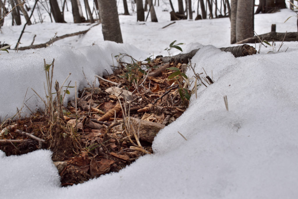 林内の斜面ではあちこちで地面が見え始めています。