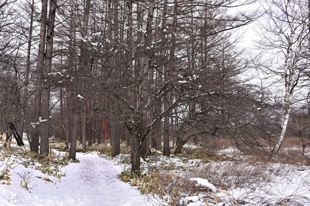戦場ヶ原の木々の上には雪が乗っていました。