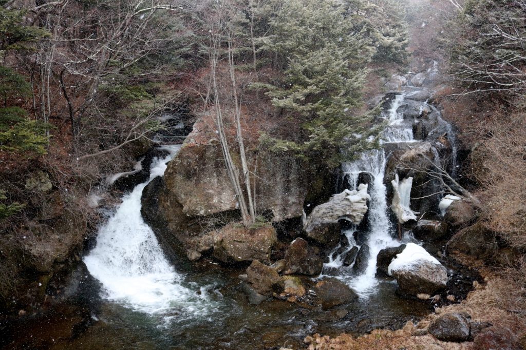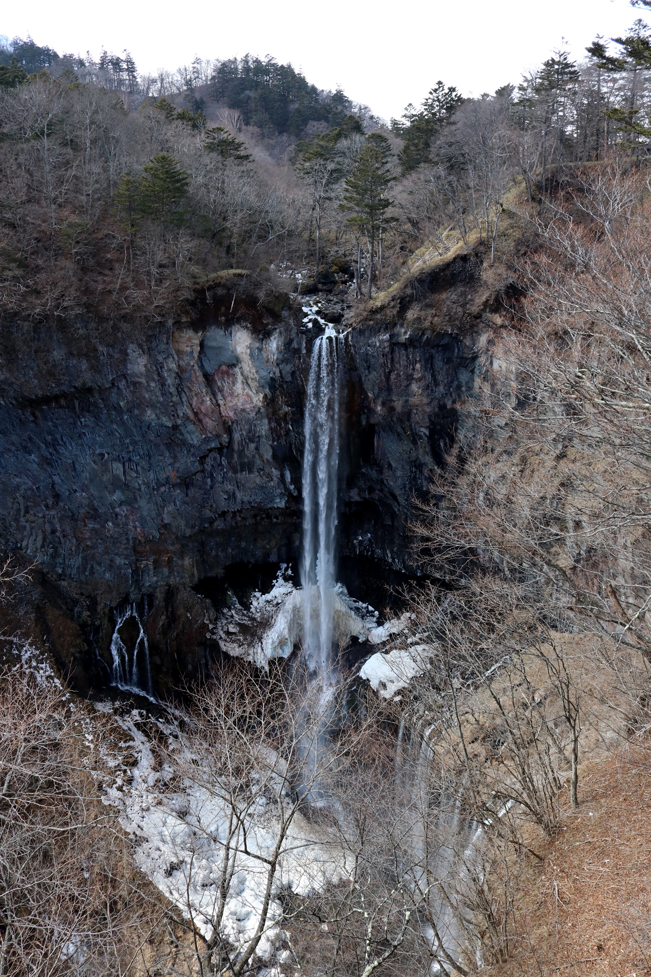 竜頭滝や華厳滝は、例年に比べるとかなりボリュームは少なくなってきていますが、滝のしぶきによってできる氷をまだ見て楽しむことができます。