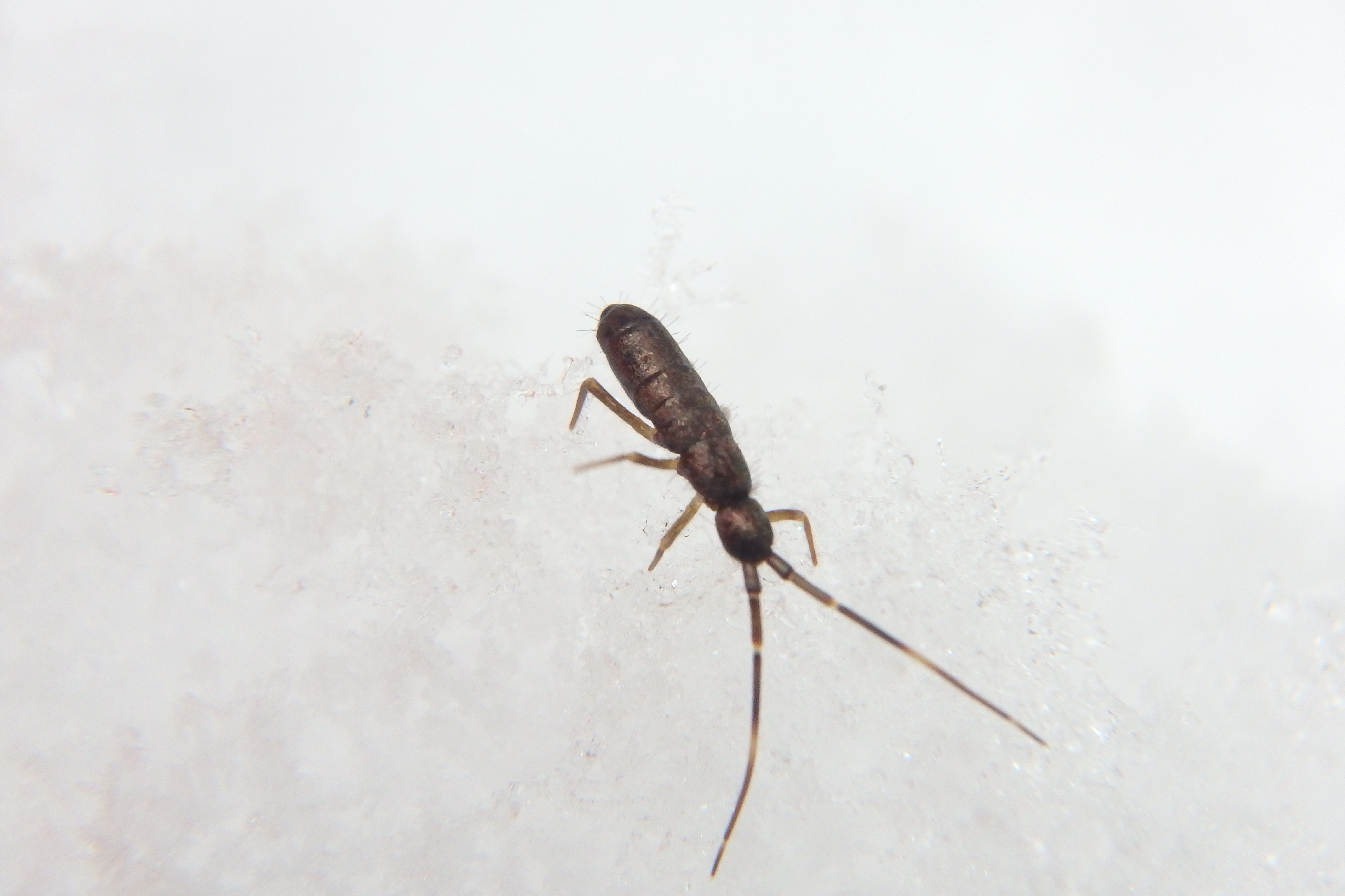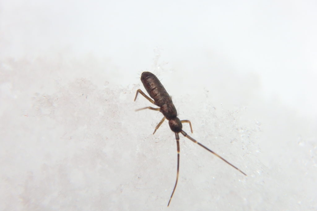 お腹にバネを持っていて、地面を跳ね回る虫です。普段は土の中で生活していますが、この時期は雪の上でも良く見られます。