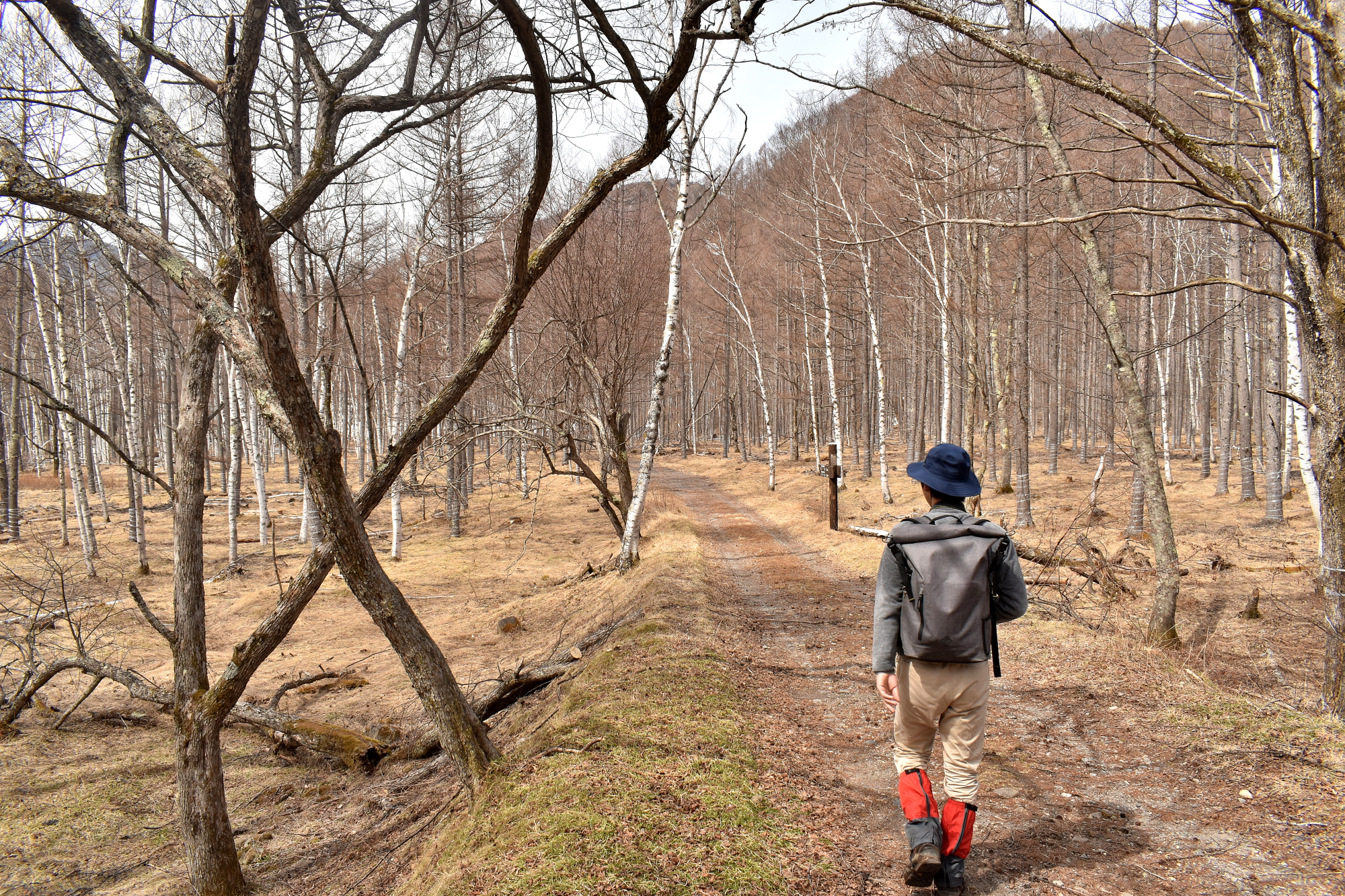 取材をした17日時点で西ノ湖入口~西ノ湖の遊歩道は残雪も無くスニーカーでも歩けてしまうくらい。