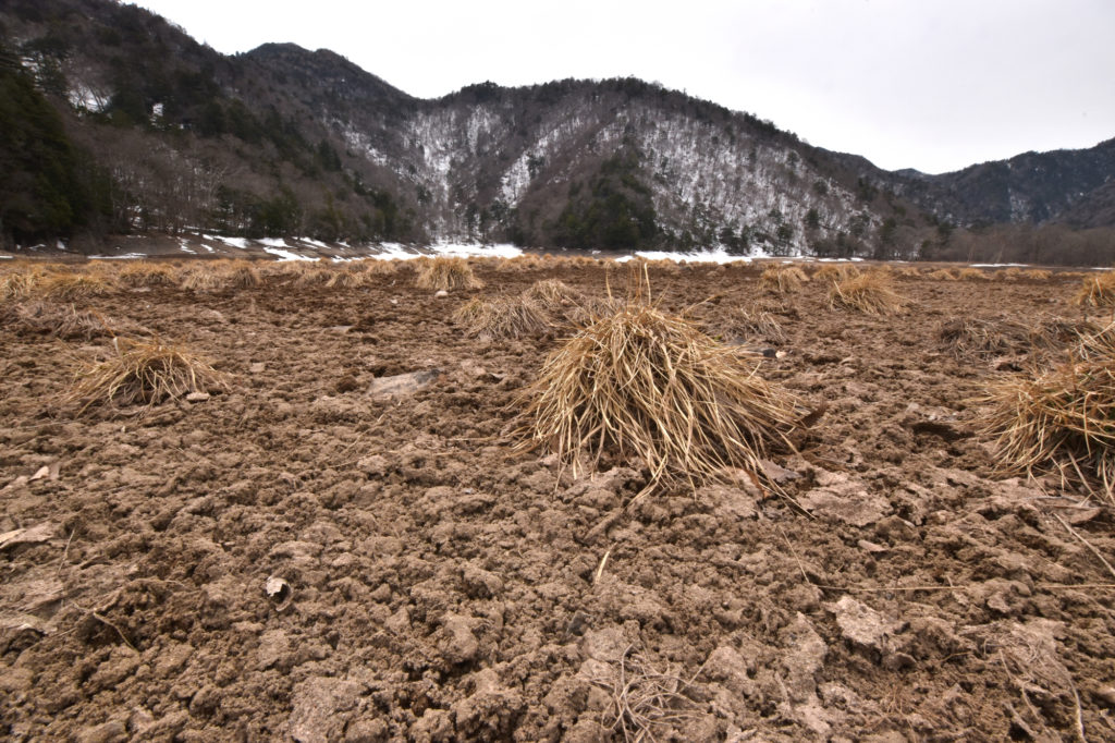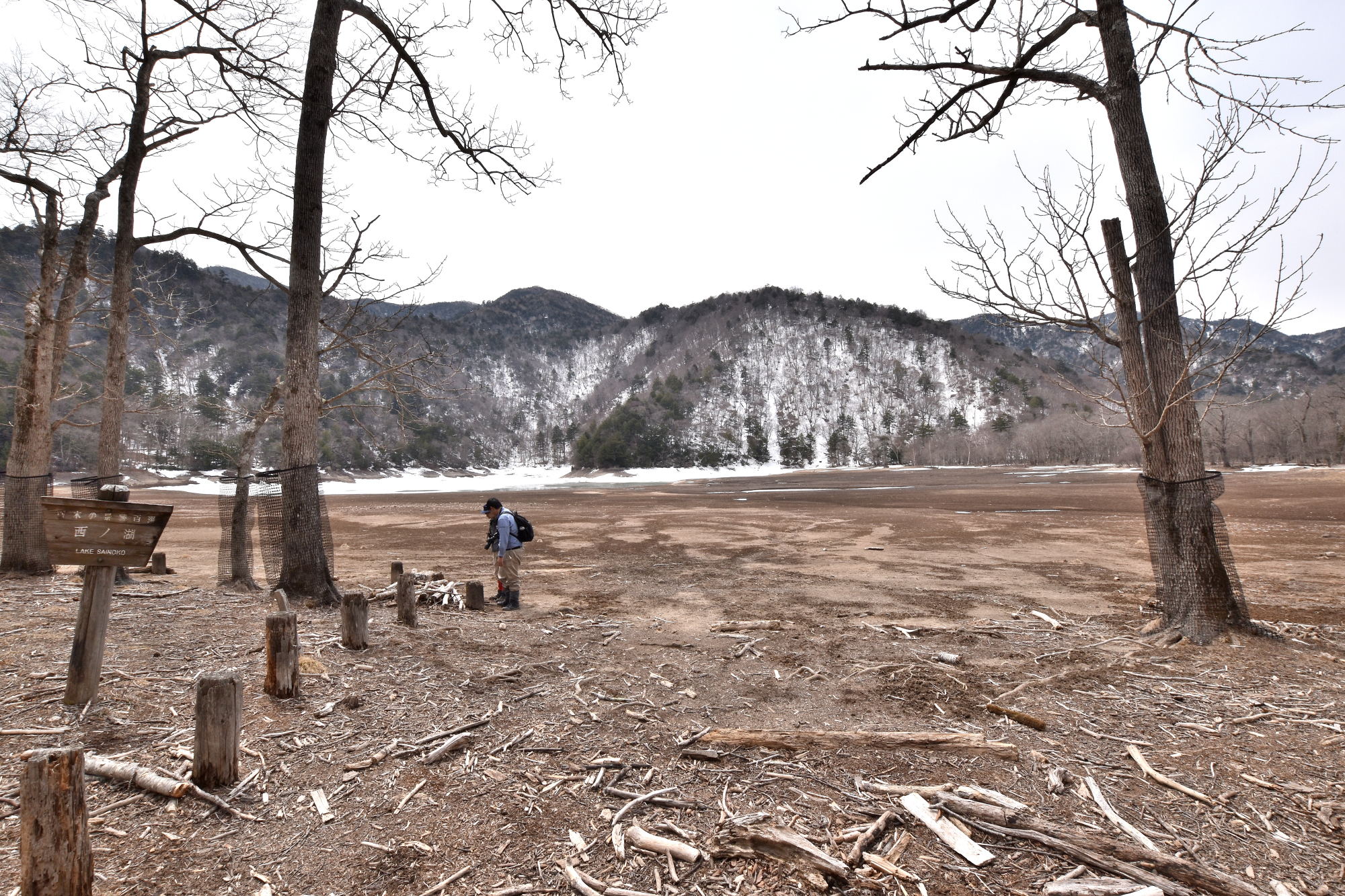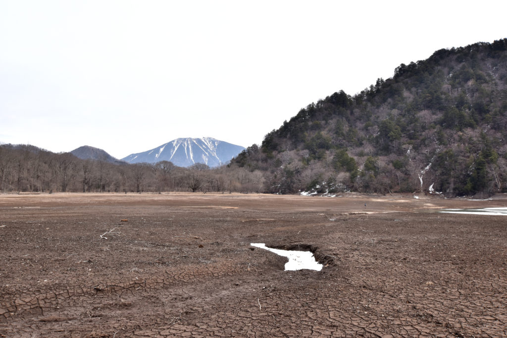 西ノ湖は例年の春先と同様水位が低く、湖面の面積は平常時の約4分の1でした。
