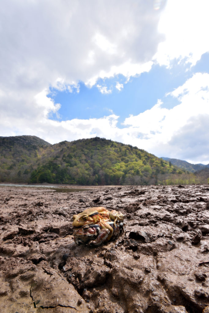 水際には産卵のために集まったアズマヒキガエルがいっぱい!