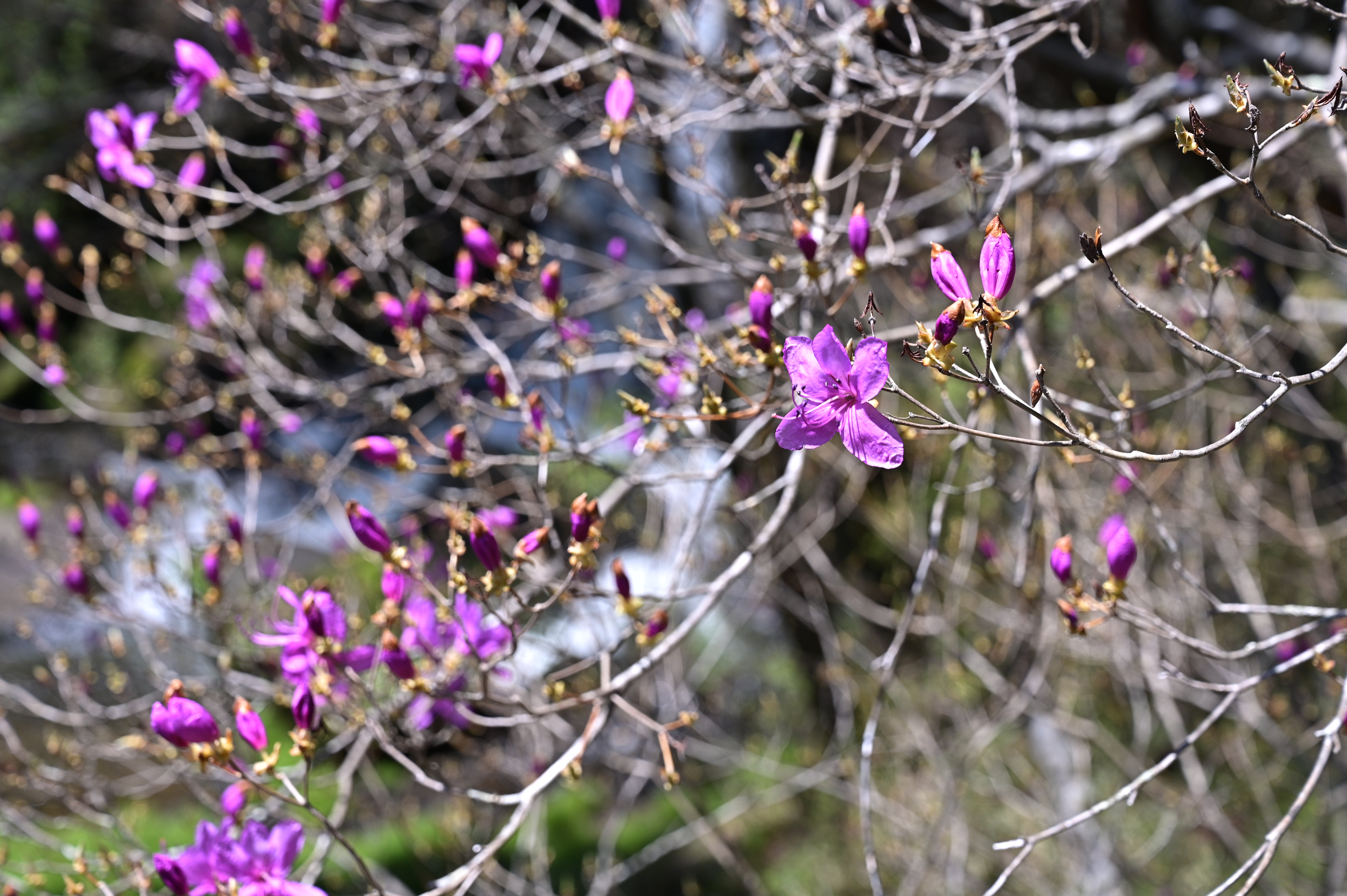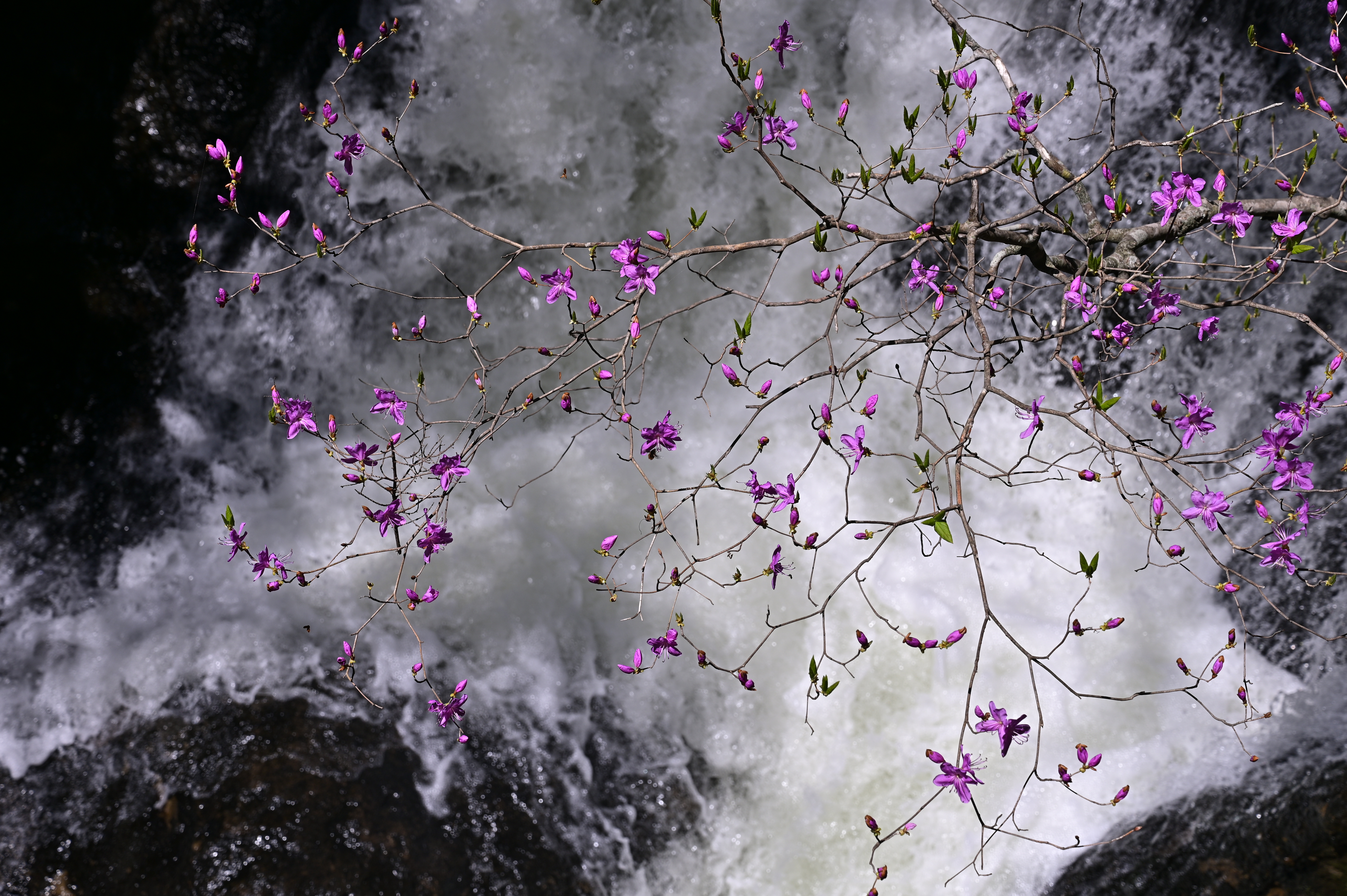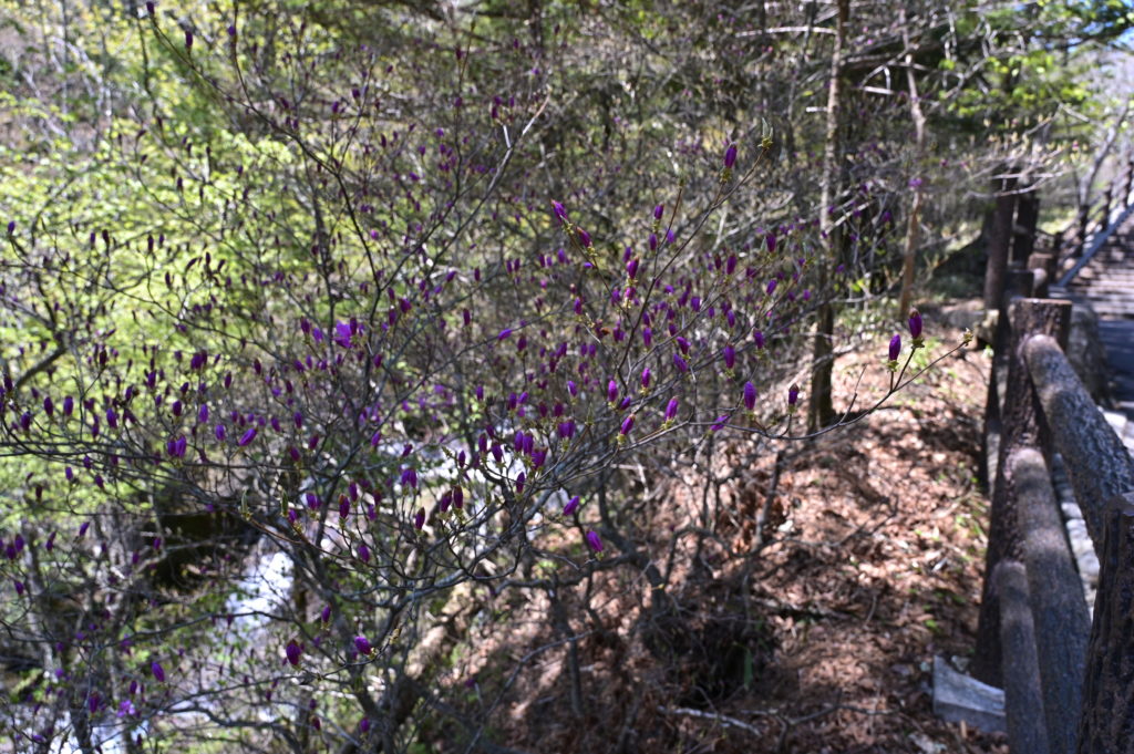 滝壺から下流は、花と蕾が半々くらいの開花でした。