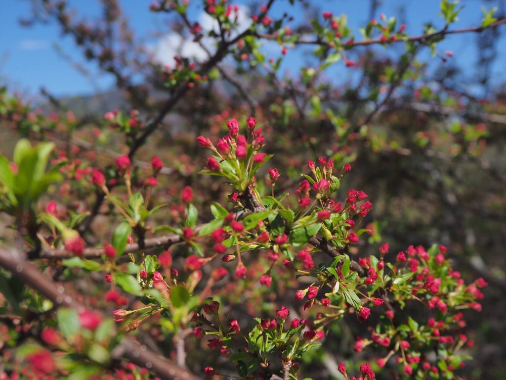木によってはほころびかけの花もありましたが、まだまだ赤いつぼみが目立ってきた!という段階です。