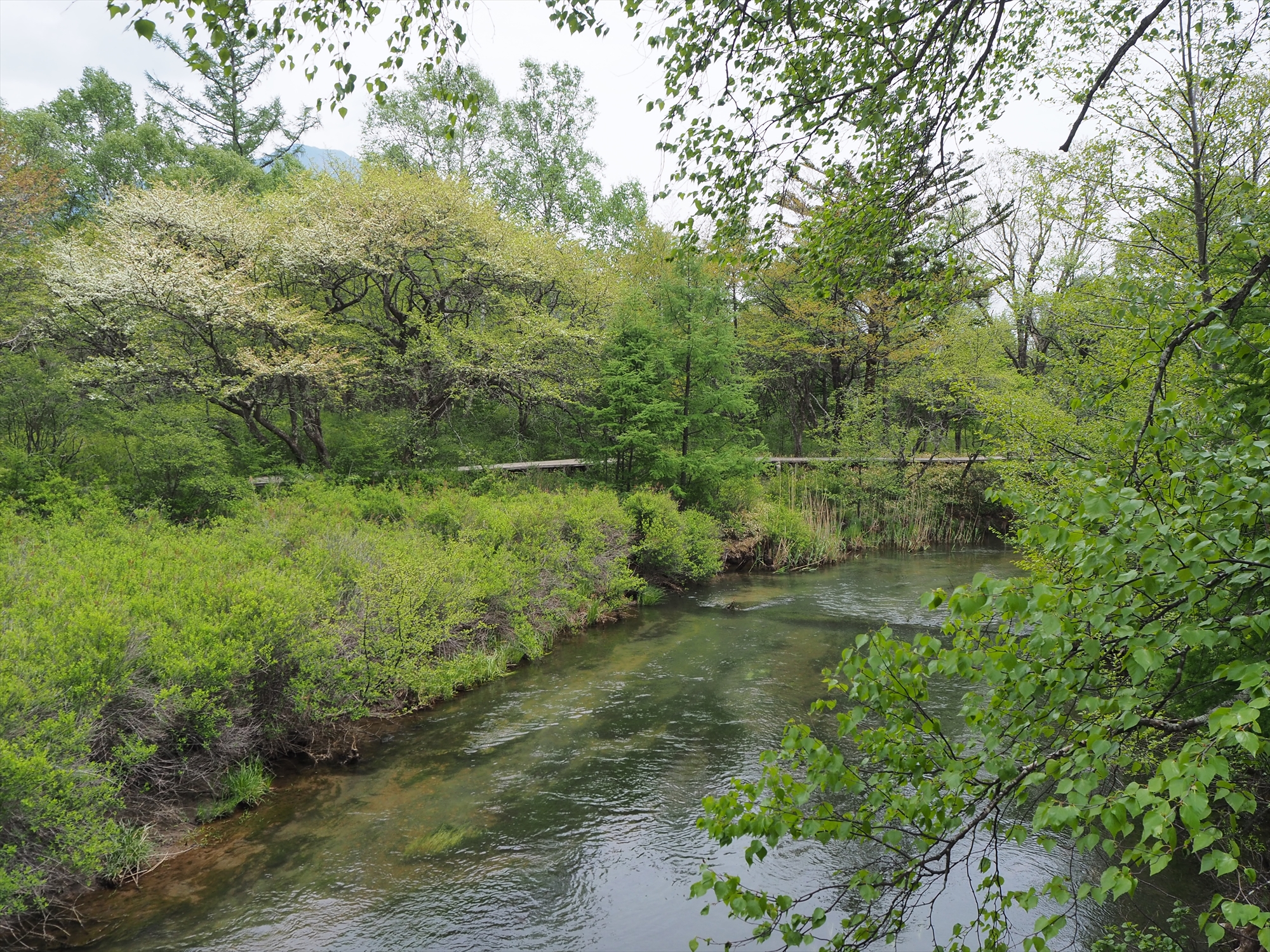 このズミをお手軽ハイキングで楽しめるのが、赤沼から青木橋間の木道です。平坦な木道の両脇や湯川沿いに、ずうっとズミ林が自生しているため、体力や時間などにあわせて距離も自由に設定できますよ!