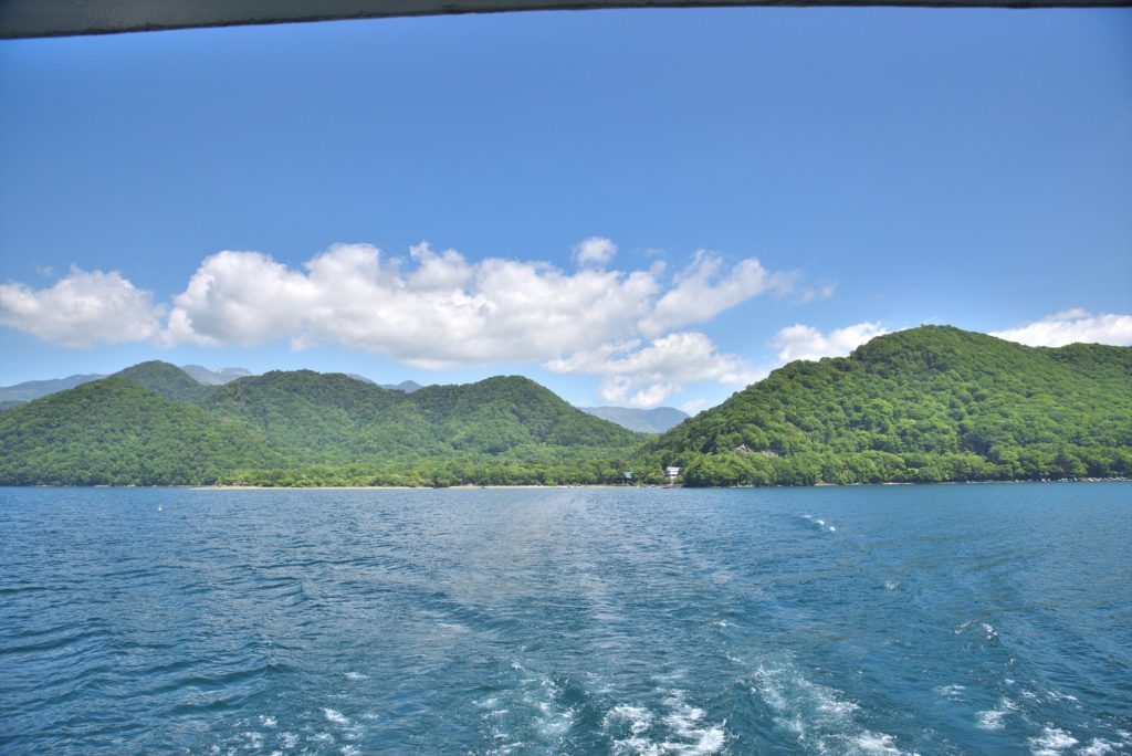 船の駅中禅寺を出発して、菖蒲ヶ浜→大使館別荘記念公園→立木観音の各桟橋を通りながら1時間ほどかけて中禅寺湖を一周します。