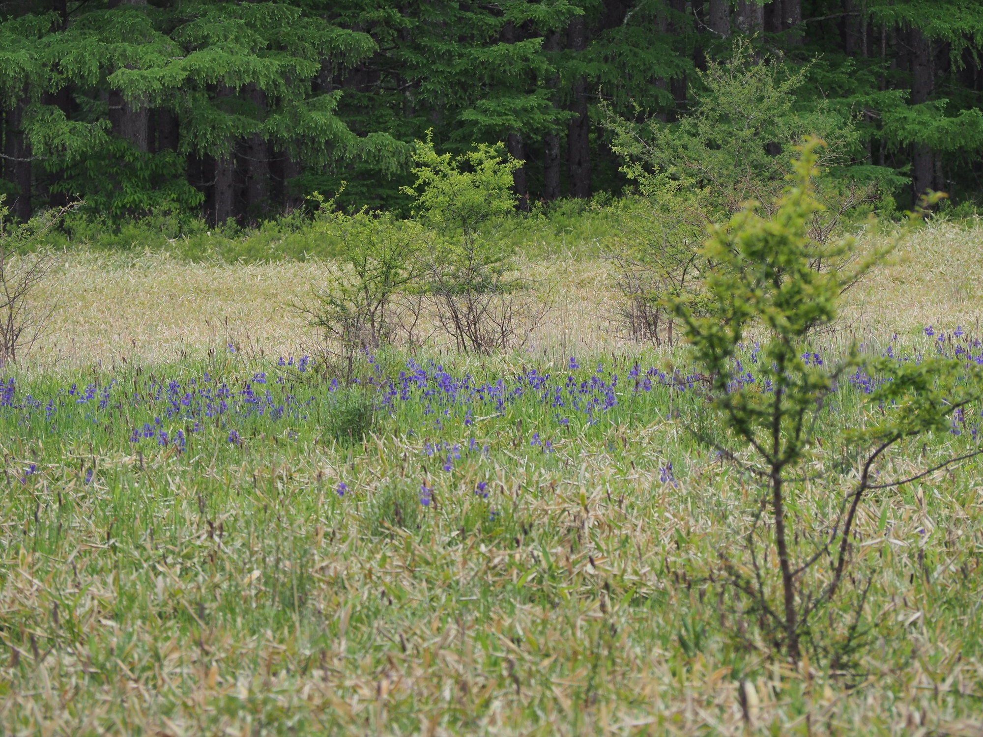 さらにもう少しすると、アヤメに混じって、赤が強めの紫色、ノハナショウブも咲き始め、やがてホザキシモツケのピンクが後を追っかけてきて……まさに「花の小田代」といった風景になってきます。待ち遠しい!