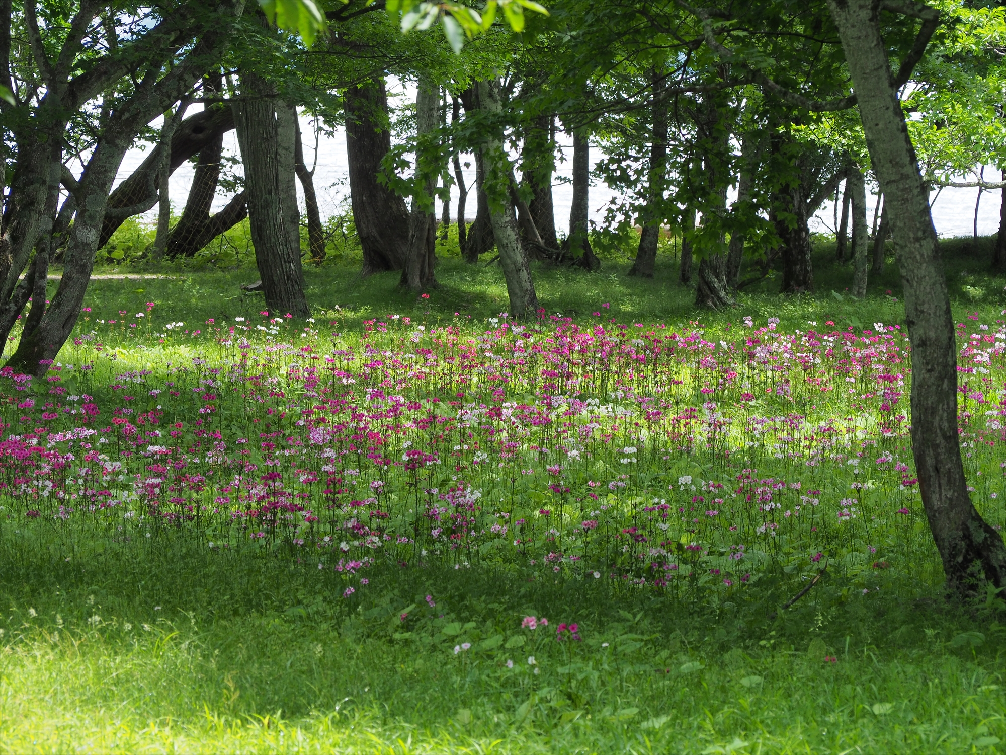 千手ヶ浜のクリンソウも、まだキレイに見ることが出来ます。(近寄ってよく見ると、下段の方からだんだん種になってきていますが……)