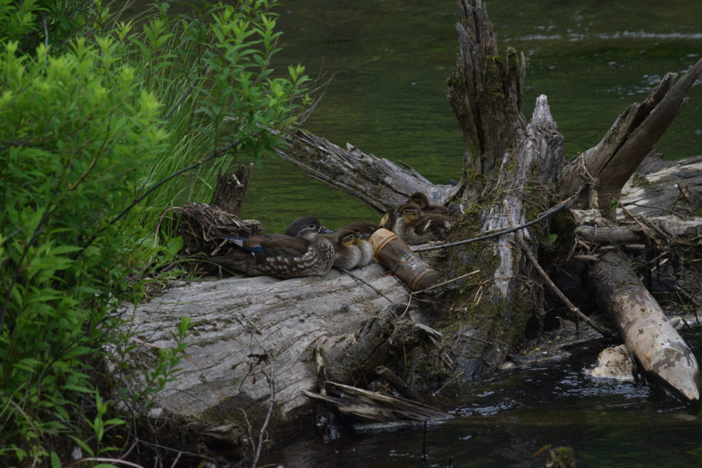流木の上にオシドリの親子がいました。とてもかわいらしい姿に元気をもらいました!