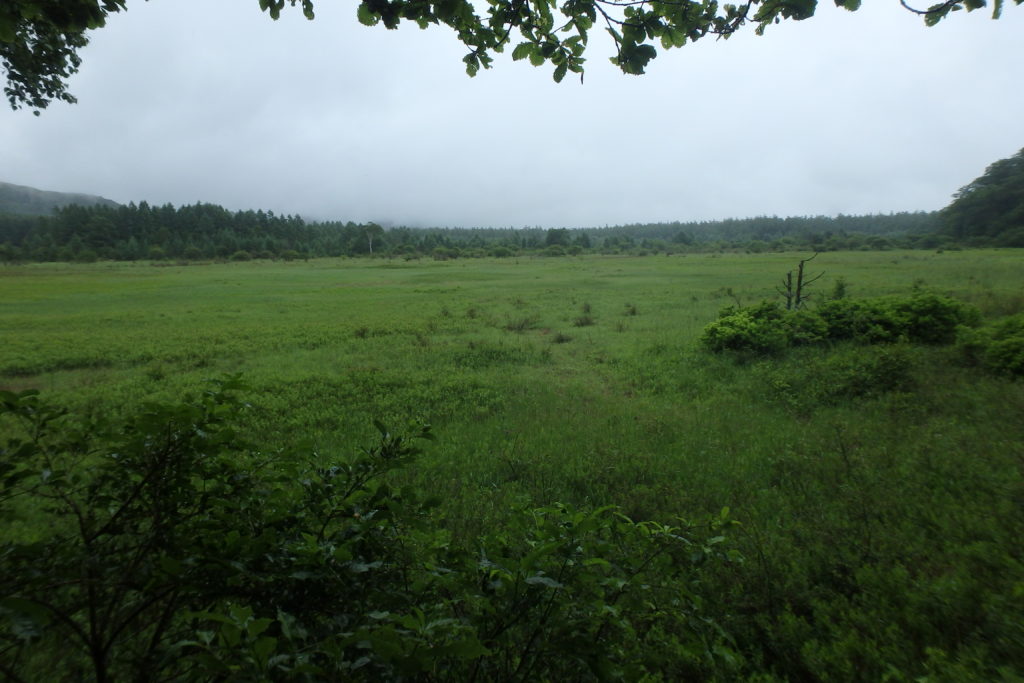 さて今日は雨の中、小田代原の開花状況確認してきました。