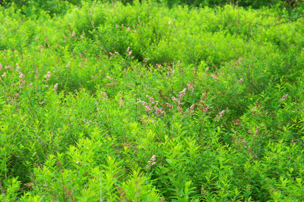 ホザキシモツケのピンク色がだんだんと目立ってきました。