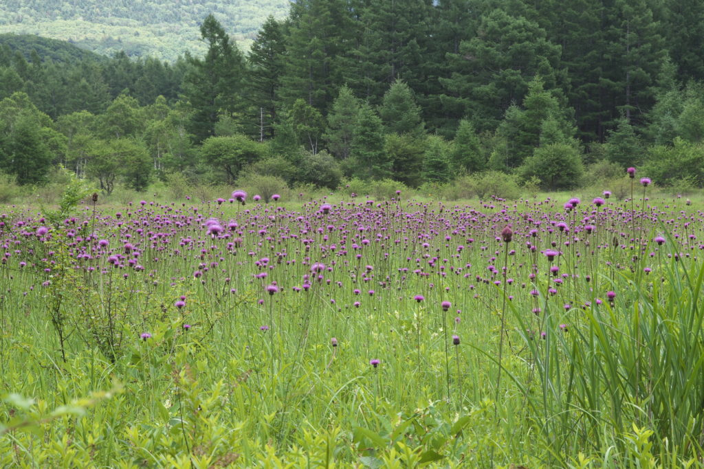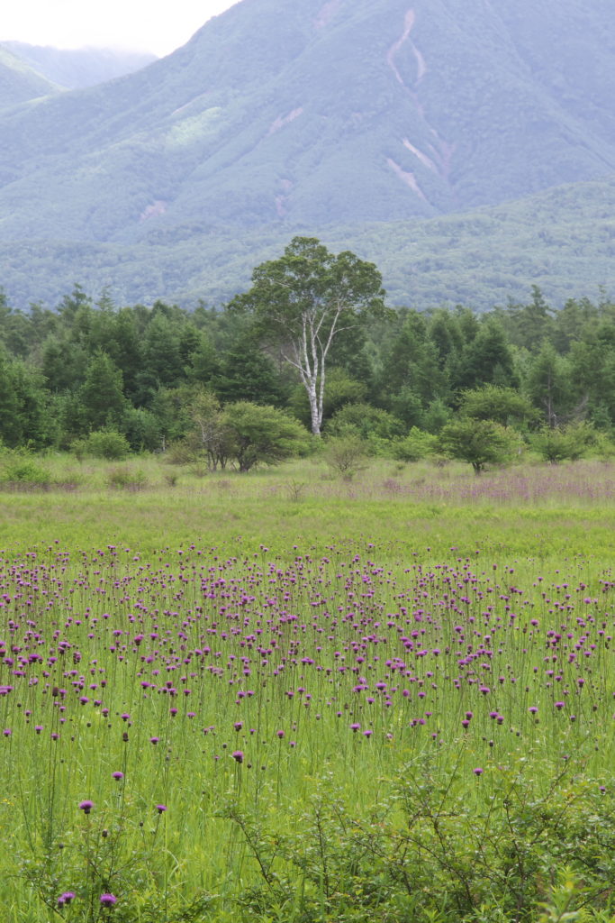 当地域は影響を受けなかった台風6号、ちょっと心配だったのは盛りを迎えていた小田代原のアザミが倒れたり傷んだりしなかったかという点・・・でも、私は赤沼自然情報センター担当で出られずどうしようかなと思っていたところ、ちょうど赤沼に別件で立ち寄ったT-村にカメラを渡してよろしく~しました。