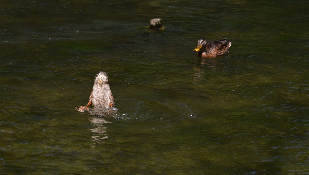 水の底の藻を餌とするマガモですが、湯ノ湖周辺のような底が深い場所だとこのように逆立ちをして餌を採ることがあります。