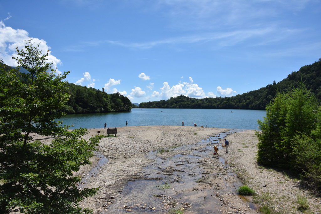 湯ノ湖を望みながら、木陰が続く林の道を一周するコースで、夏の日差しが照りつけるこの時期でもハイキングを楽しみたい方にはもってこいのコースです。