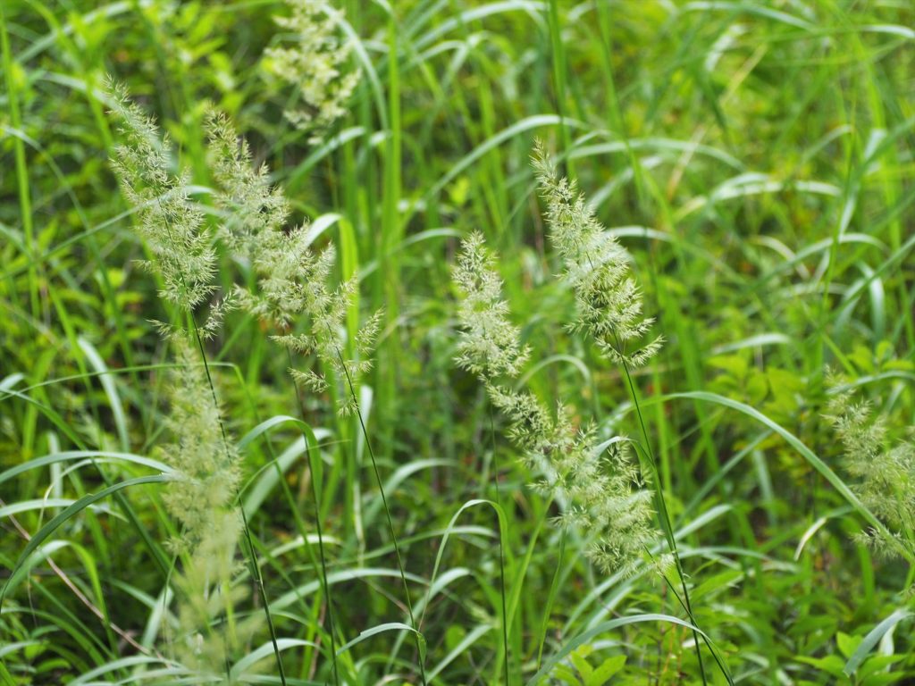 これはイネ科の穂の色。樹木の紅葉より先に始まる「草紅葉」の一部を担う植物が、穂を付け始めていました。