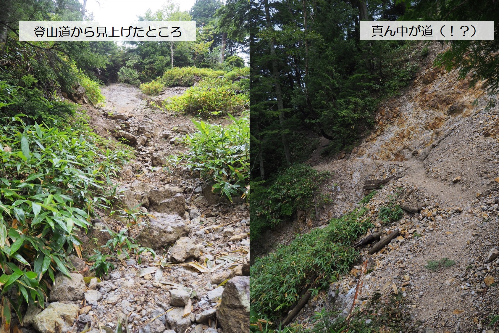 土砂崩れや片斜面のザレ場を乗り越え、