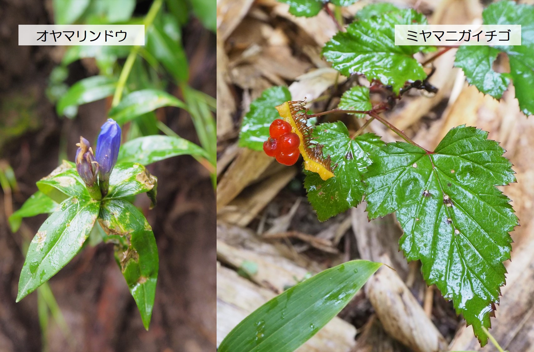 息を整えつつ辺りを見ると、オヤマリンドウのつぼみ、ミヤマニガイチゴの実など、意外とカラフルな物に溢れている事に驚きました。