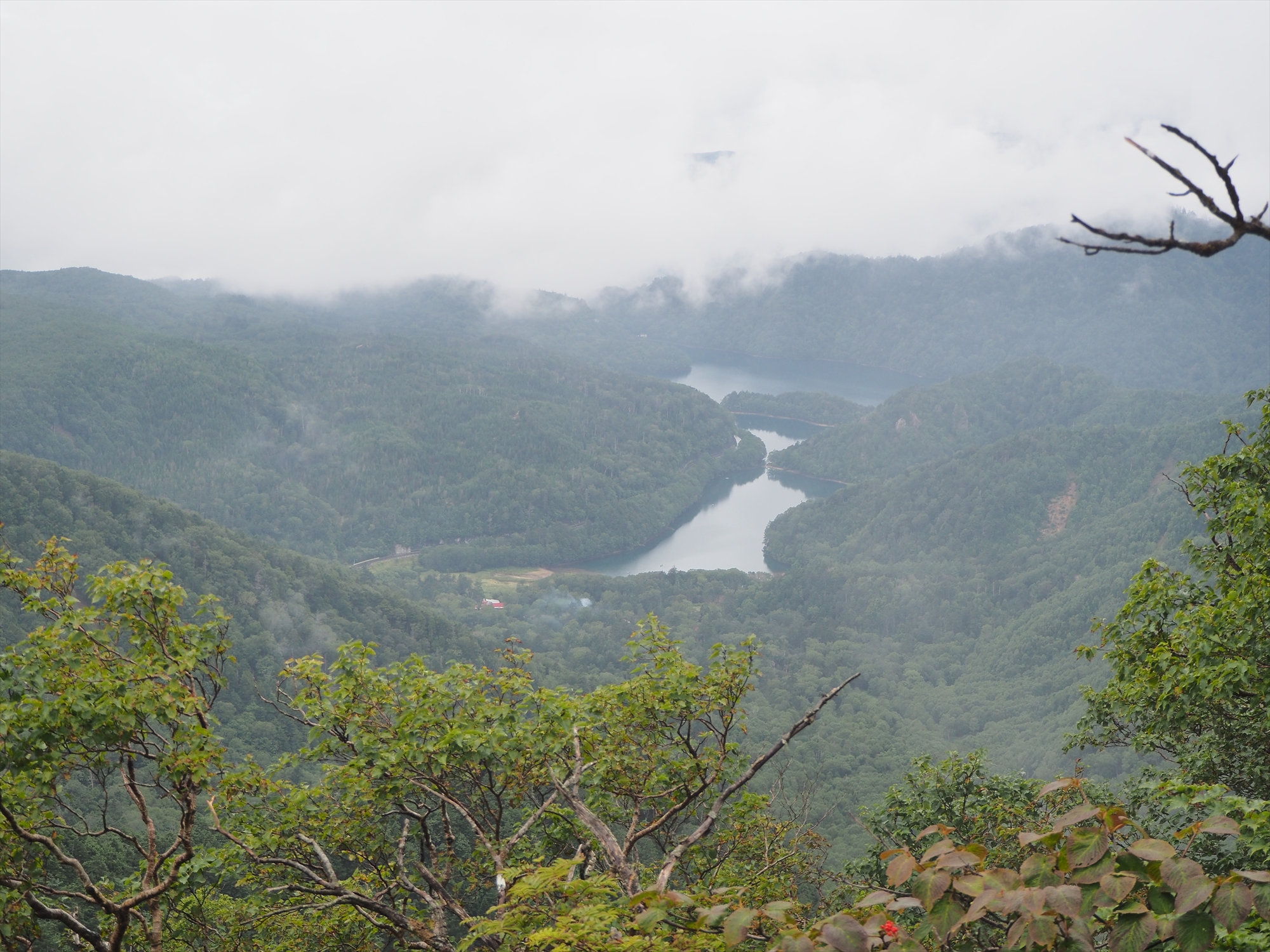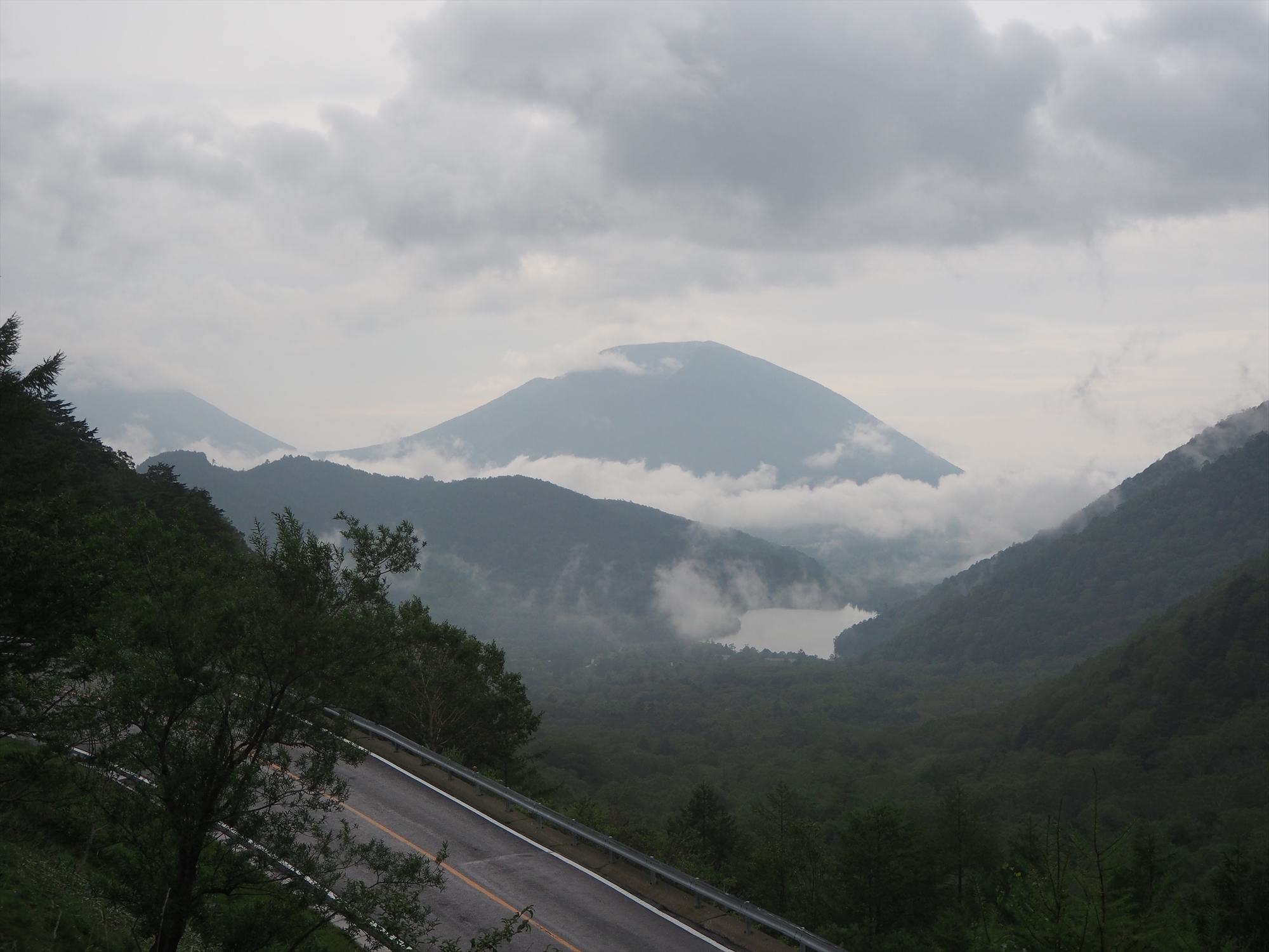 朝から雲&小雨模様でしたが、まだ雲が高く、男体山と湯ノ湖が望めた登山口からスタート。しかし急斜面や階段に阻まれ、出発5分で息も絶え絶え。