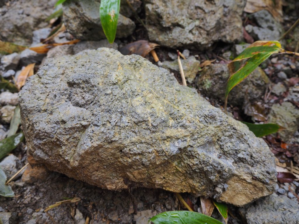 一度意識してみると、灰色の凝灰岩や盤状節理など火山性の岩の特徴がそこかしこで見られました。