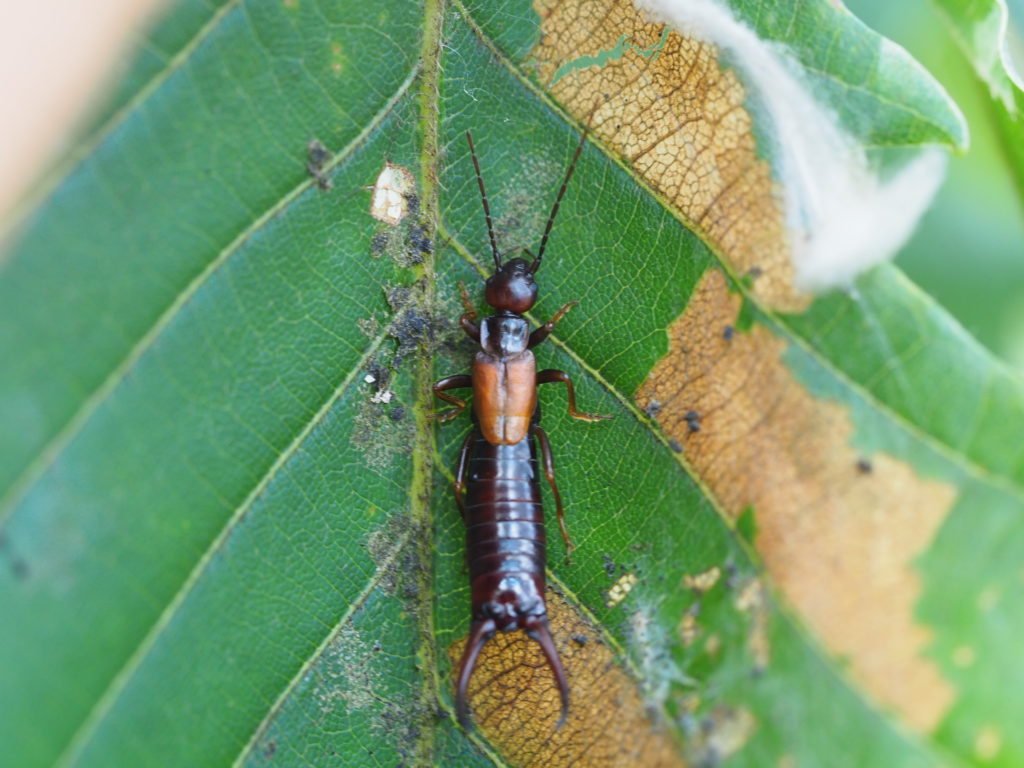 同じ葉の中にはキバネハサミムシも隠れていました。