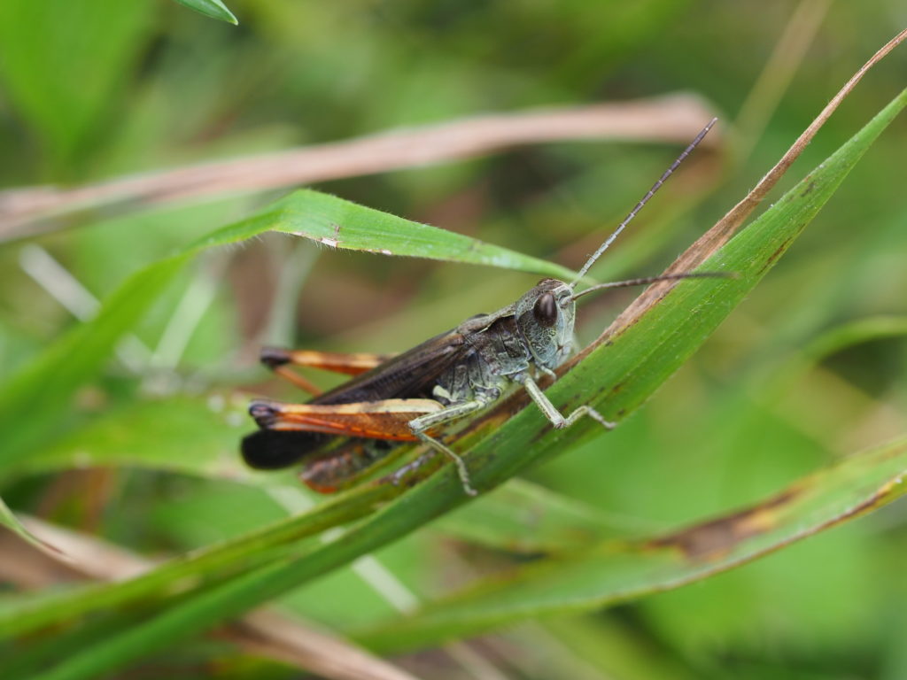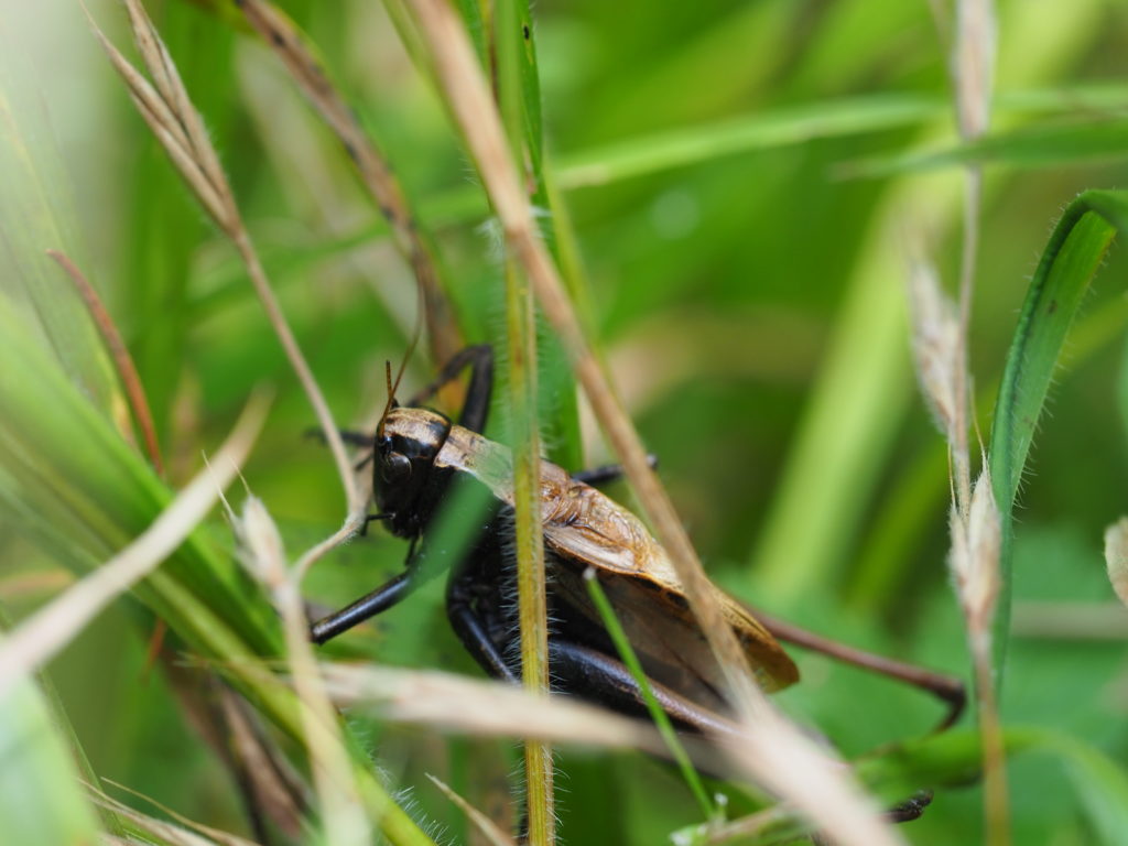 足元のちょっとした草地からは「ジッジッジッ」とか「ジャッジャッジャッ」が聞こえたらそこにはキリギリスやバッタの仲間が潜んでいます。