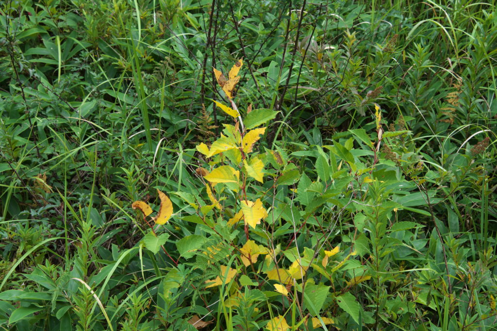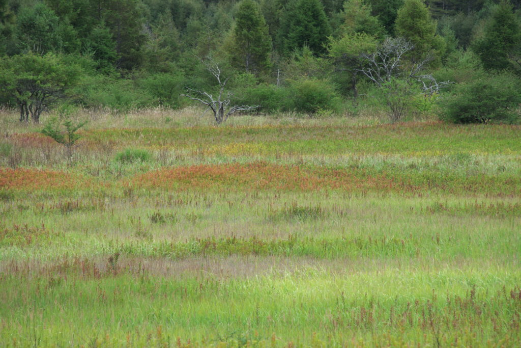 白っぽく見えるところは、イネ科のススキやヌカボ、ノガリヤスの仲間など。