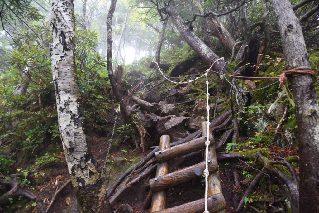 頂上に着くころには霧も立ち込め、景色は見えなくなってしまいましたが、さきほどの一瞬の絶景を噛みしめながら無事下山。