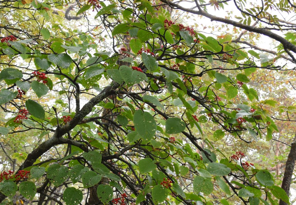 その周囲ではオオカメノキも同じく赤い実を付けています。