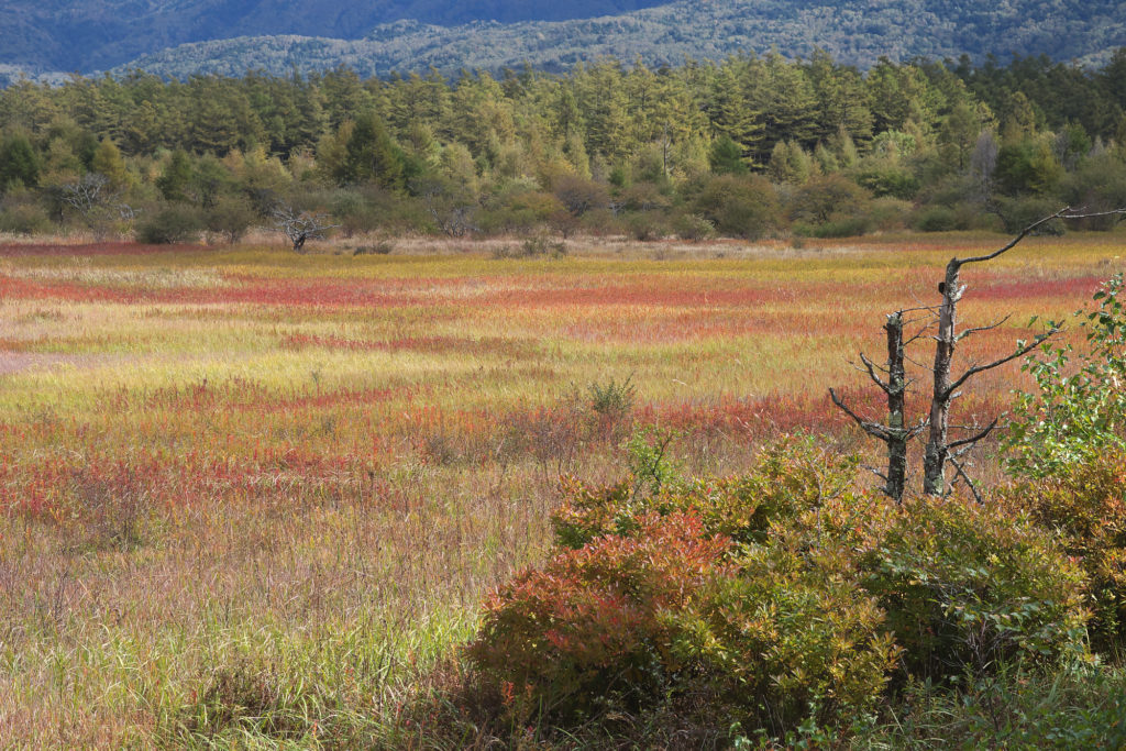 本日お昼前、強い雨がやみ青空が覗いた隙に小田代原へ草紅葉チェックへ行ってまいりました。
