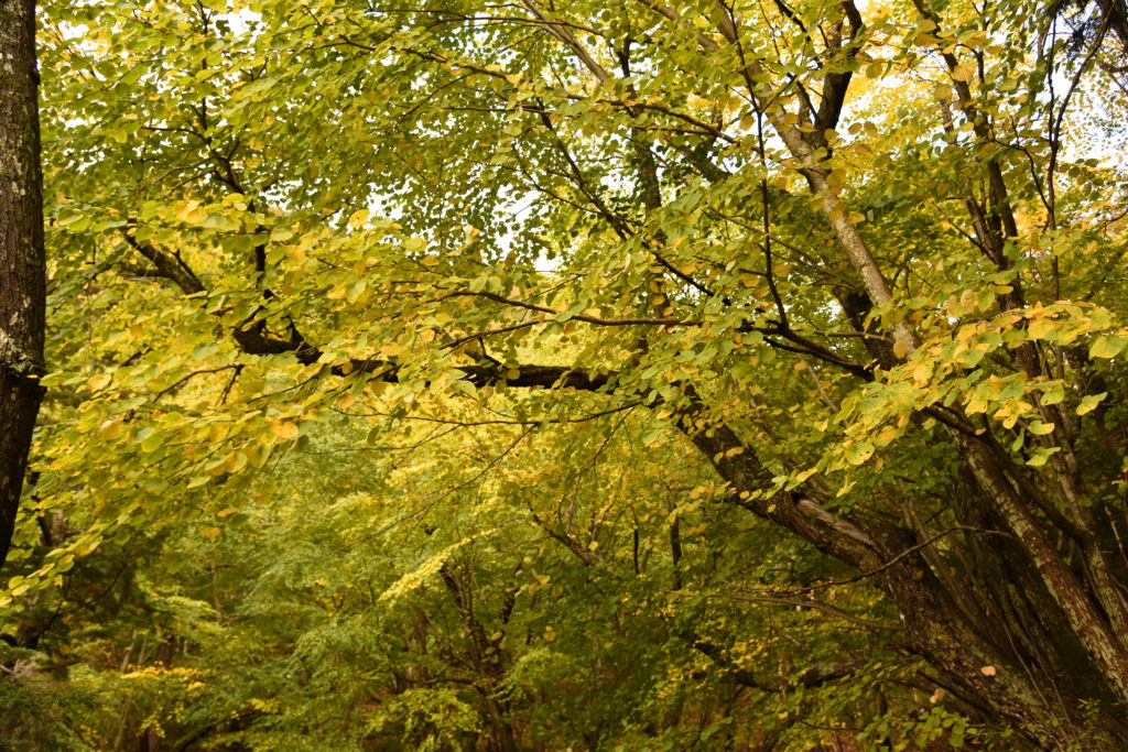 刈込湖に向かう道中で他の木がまだ紅葉しきってない中、ひときわ目立った黄色をした木が目に飛び込んできました。