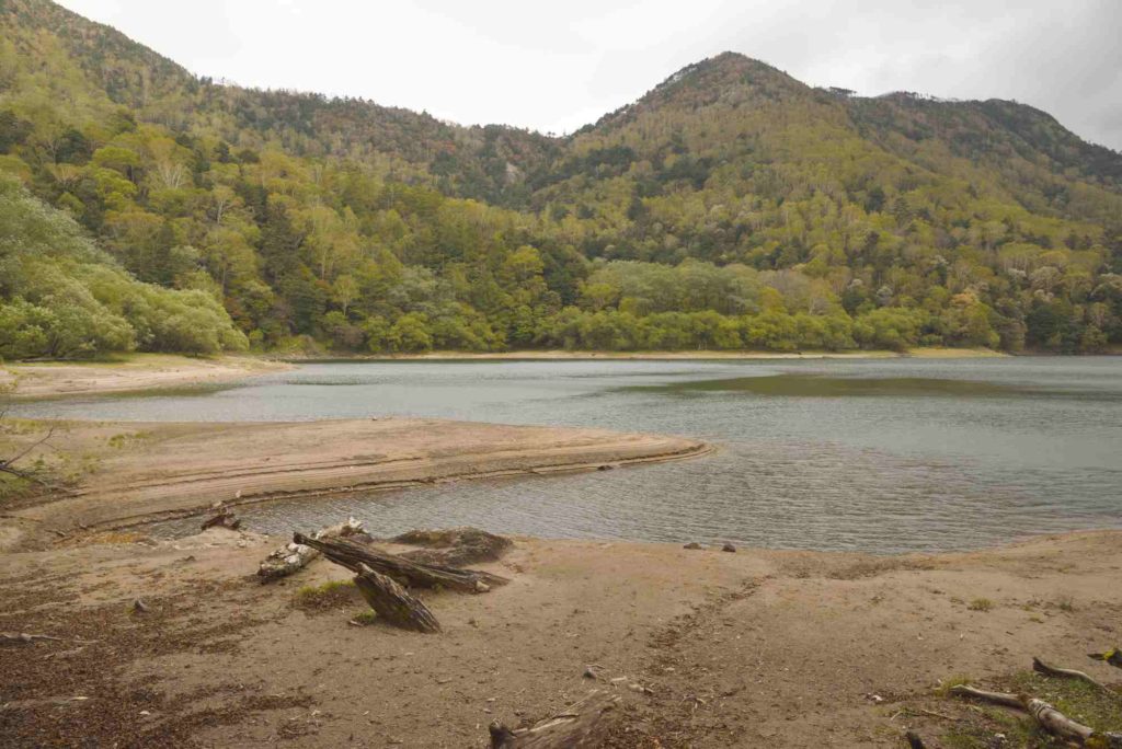 刈込湖に到着!水量は夏に来た時に比べてだいぶ少なくなっていました。