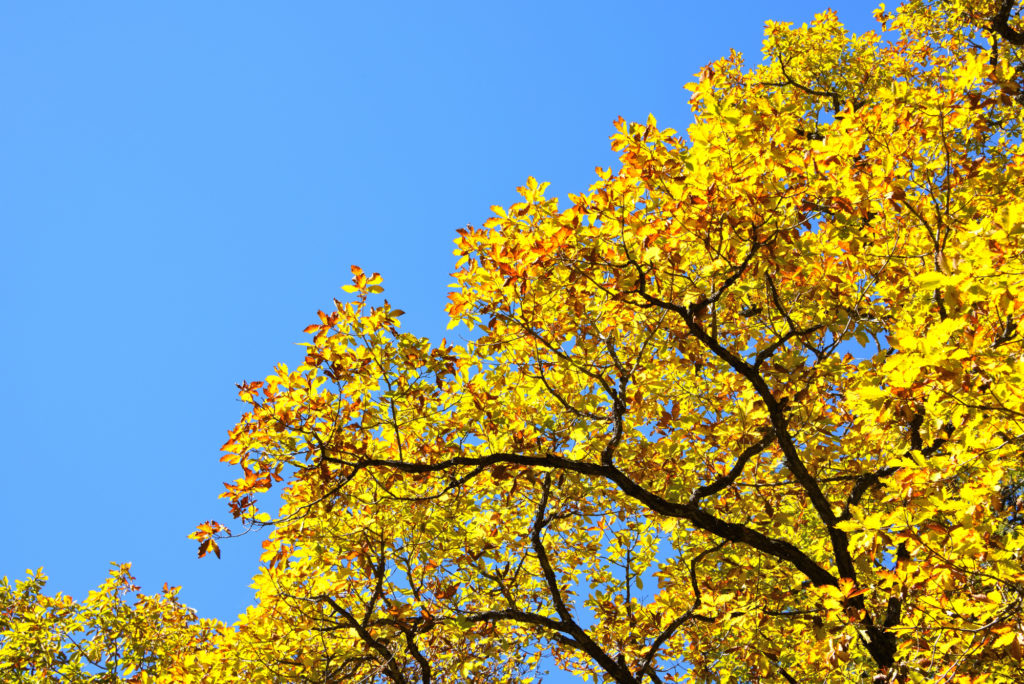 紅葉が遅れ、散りにくい青葉の状態で台風を迎えたことが幸いしたようですね。