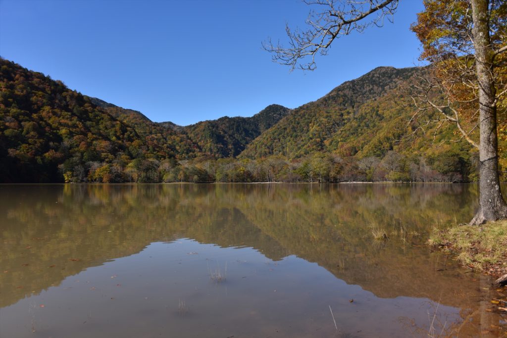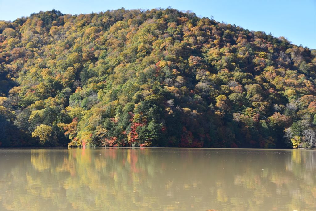 湖面近くの赤や黄が目を惹きましたが、もう少し色付きは進みそうです。