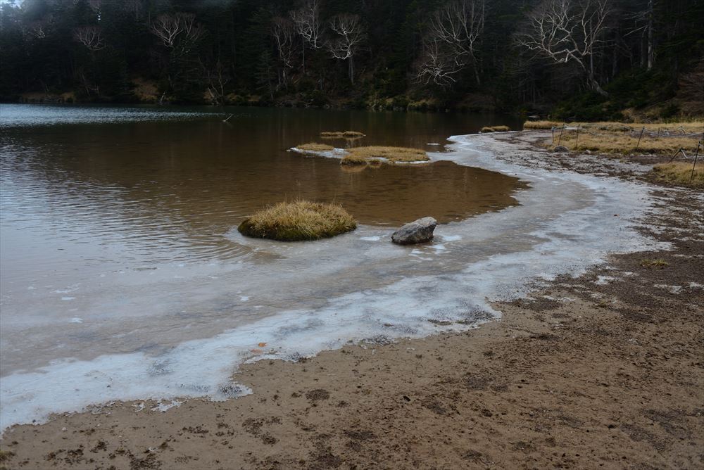 弥陀ヶ池はすでに岸辺が凍結