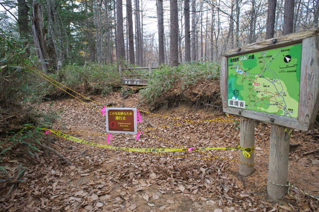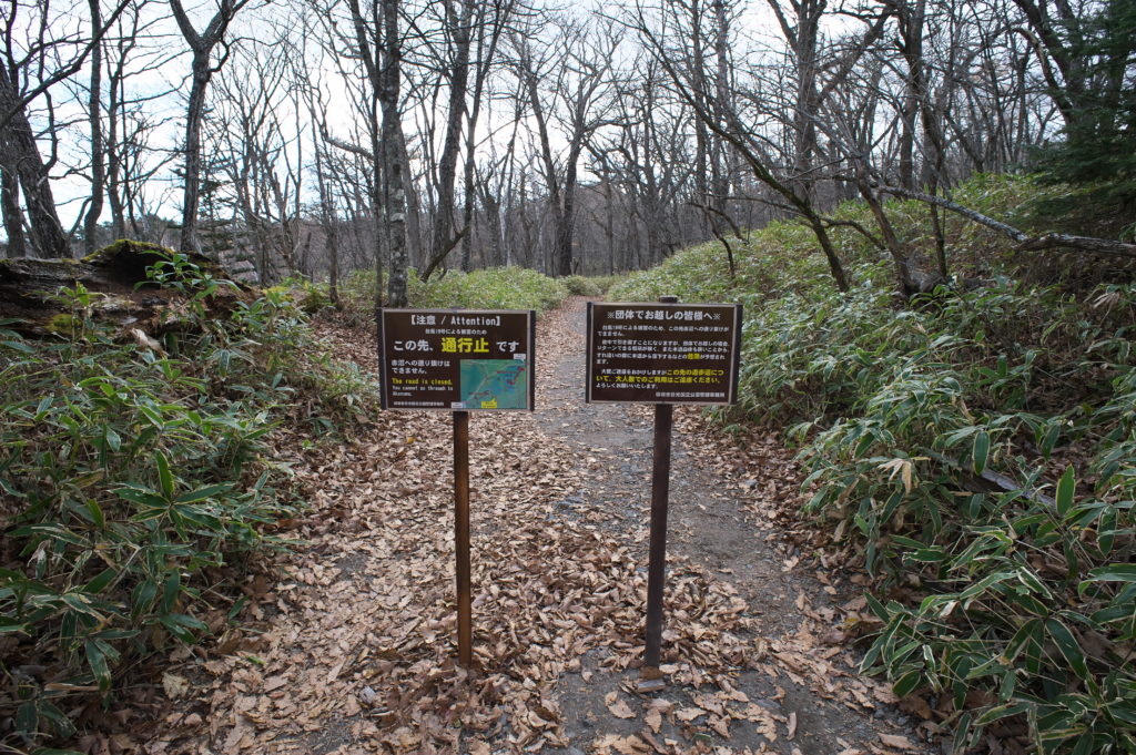 戦場ヶ原と小田代原の分岐では、立て看板で注意書きがあります。