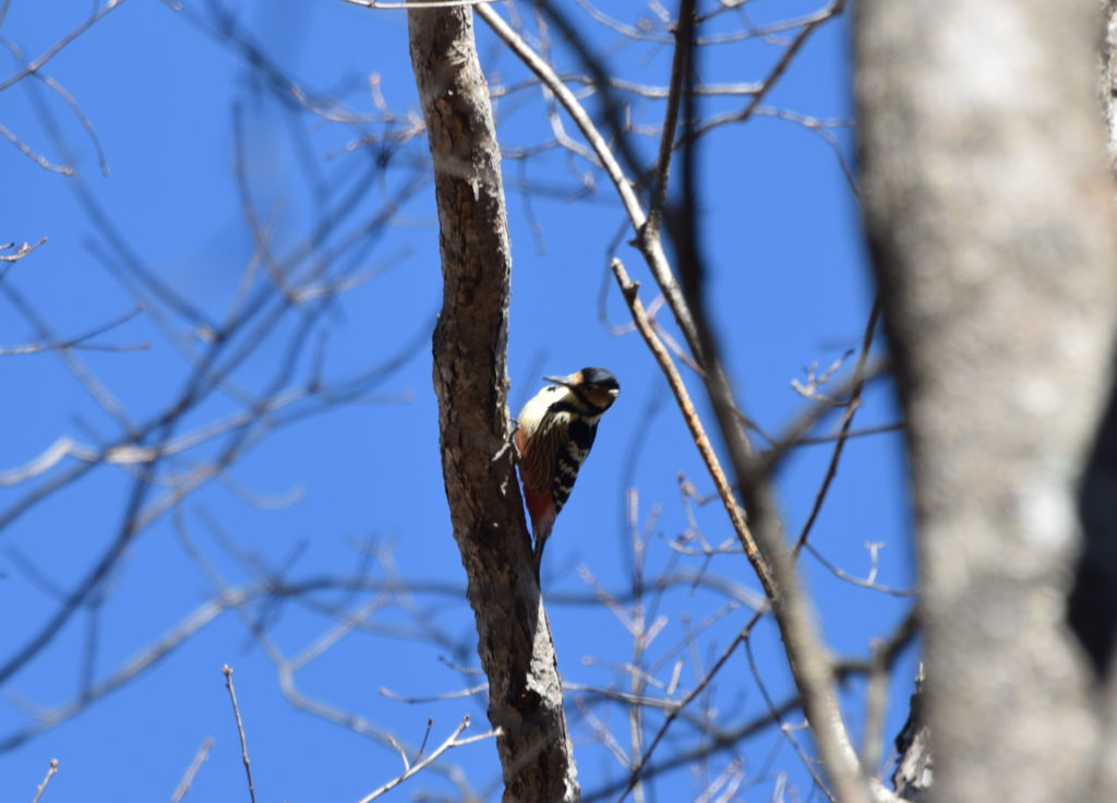 代わりに(?)コンコンと夢中で木を突くオオアカゲラを発見。