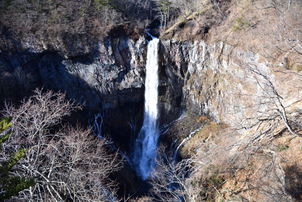 中禅寺湖という堰止湖やそこからの放水路ともなっている華厳滝は、男体山の火山活動によって形成されました。華厳滝を形作る岩壁は脆い火山性の岩石のため、形成された当時約20,000年前よりも800mほども後退しているのだとか。