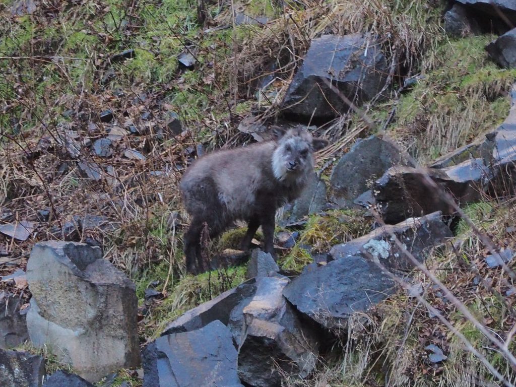 レトリーバーなど大型犬とさほど変わらない小柄な体に、大人なら誰しも持っている角が生えていない。今年生まれの子どもかな、と推測できます。