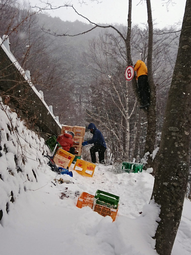 時にはこんなこともして、リボン&コース看板を設置してきました。