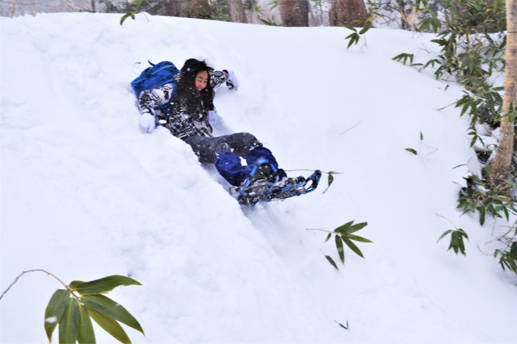 スノーシューならでは、普段入れない雪の森に入ってとっておきの楽しい時間を堪能。