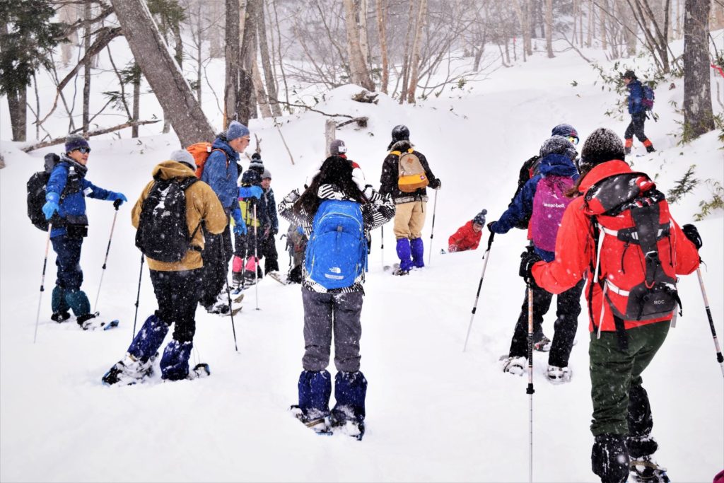 開催日は少し雪模様でしたが、晴れ間も覗き前日の降雪も相まって、とても気持ちの良いスノーシュー日和でした。