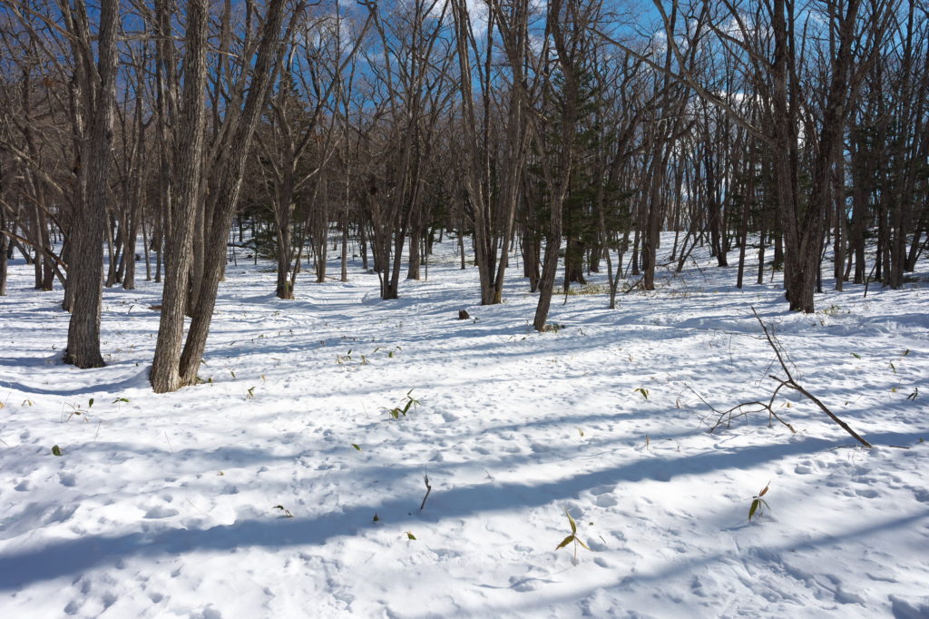 光徳周辺の森は、雪のない季節には自由に歩き回ることができないので、冬はそんな場所に入るチャンス。