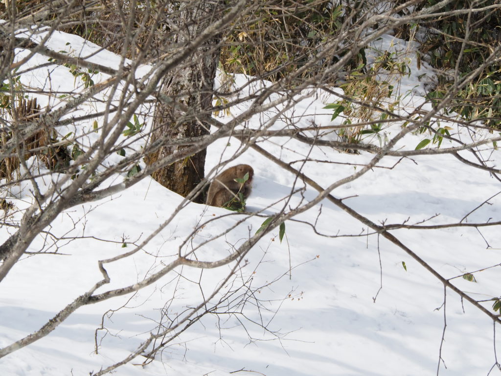 今回は湯元のスノーシューコースの一つである小峠コースに入り、途中の蓼ノ湖まで行ってきました。固まった雪がほとんどで、ごく一部にその上にさらさらの雪が数㎝のっているような場所もありました。