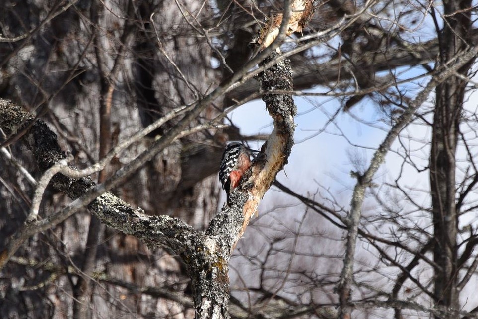 なかなか見やすい位置のため、しばし観察タイム。通りかかる人が少なく葉もなく、じっくり観察するにはいい時期です。木の中の虫を探しているようで、時折木くずが落ちるのが見えました。今日はここの他にも数か所で木を叩く音を聞きました。