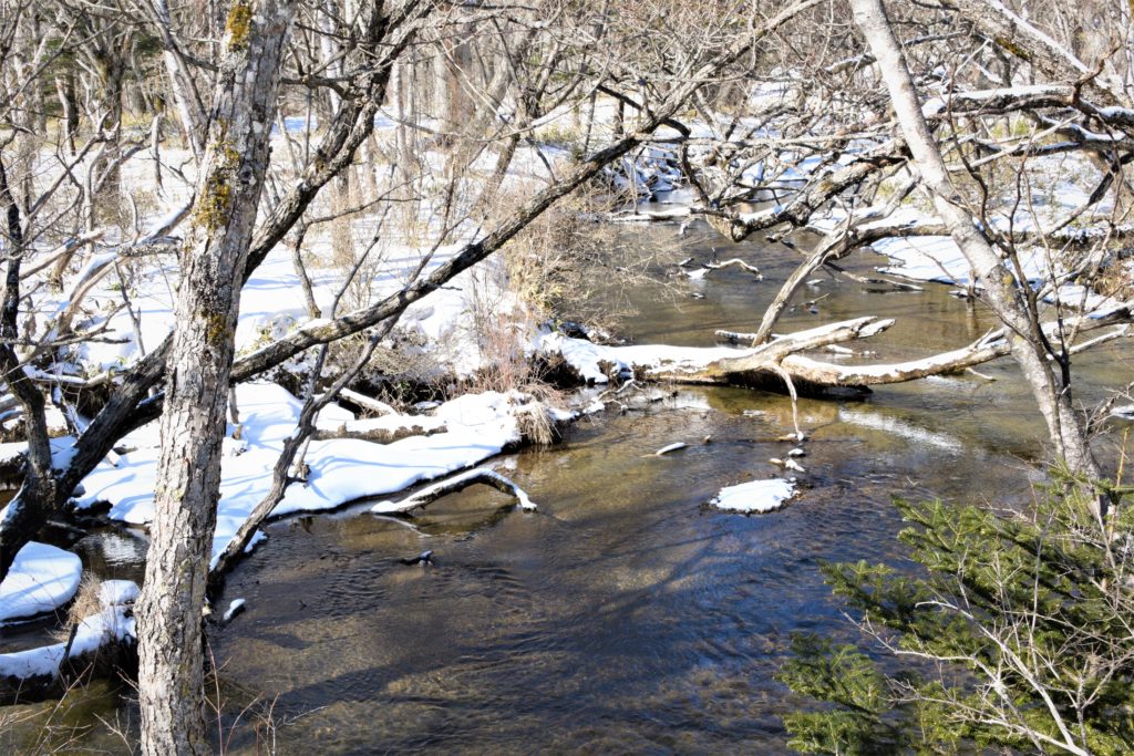 河岸は雪が積もってはいますが‥‥雪解けが感じられ川の水位が普段より高くなっています。