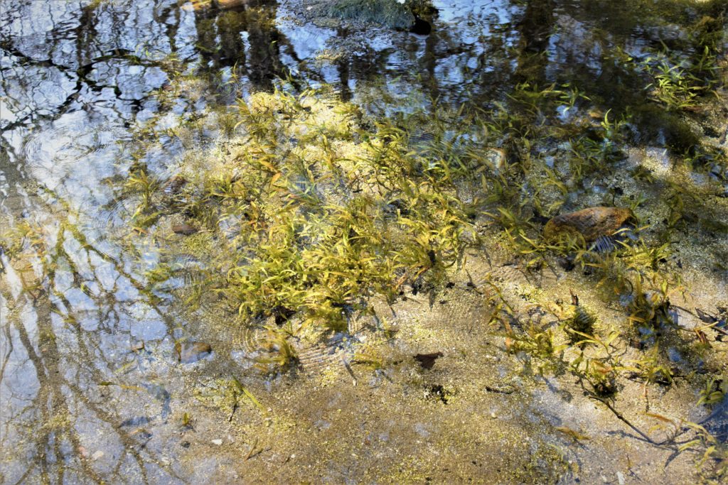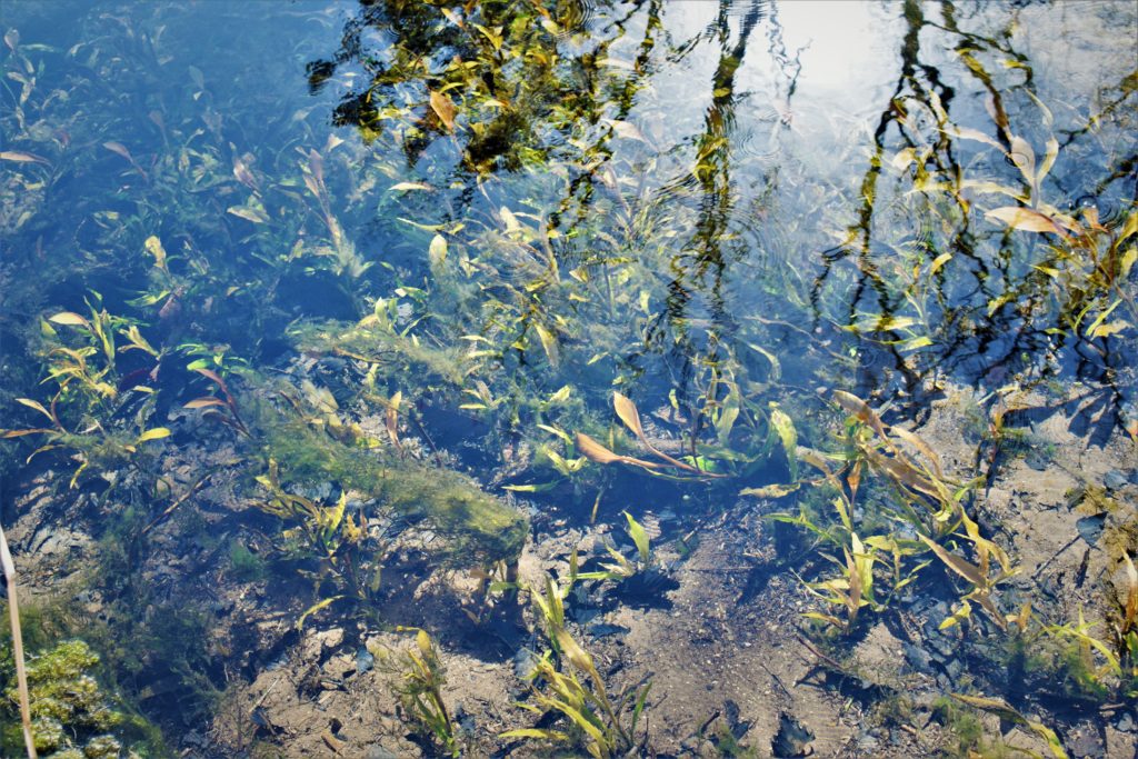 ちょっと写真では分かりづらいのですが、水草の生えてない部分の砂が沸き上がり、池の下から地下水が湧いているのが見えます。