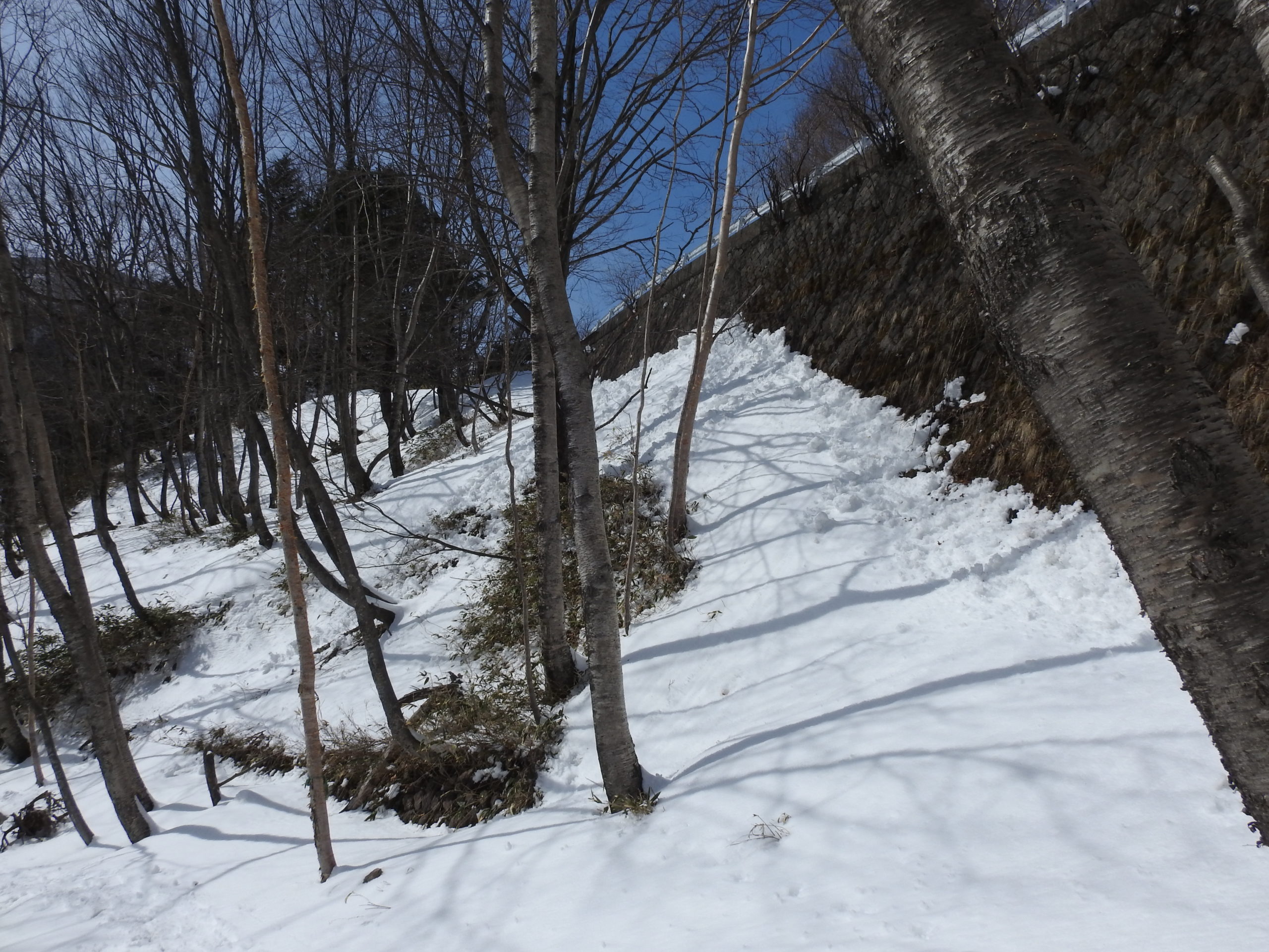 コースのすぐ上で雪崩が起きた跡も確認しました。このような場所を見かけたら出来るだけ距離を取り、長居はせず速やかに通行してください。(kobo)